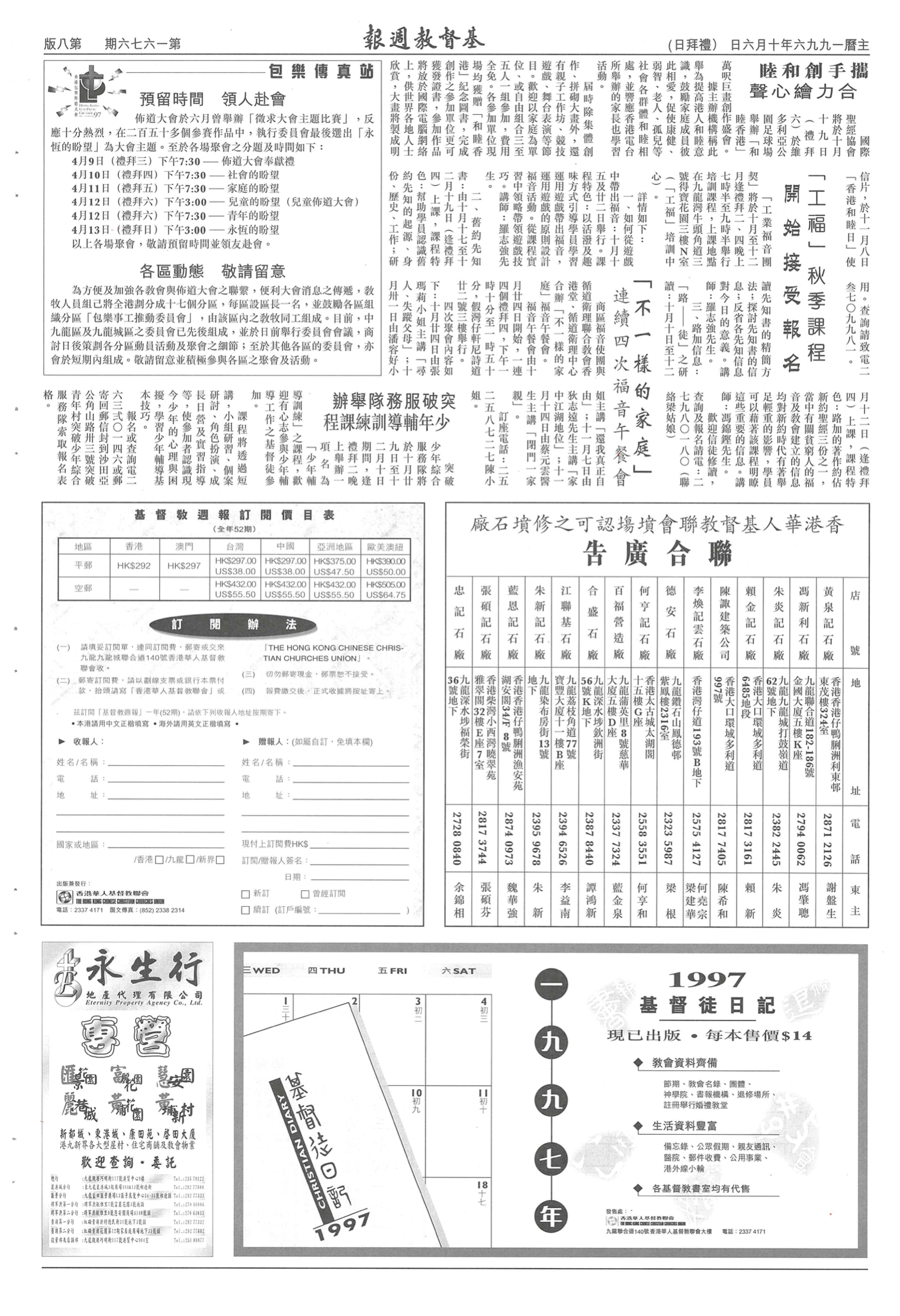 教會、機構短訊 第 1676 期(1996 年 10 月 6 日) ◎ 教會、機構短訊 分享: A A 簡 內容刊載於《基督教週報》1996年第1676期第8版揭頁版可點擊以下網址瀏覽:https://christianweekly.net/1996/19961006/19961006.html