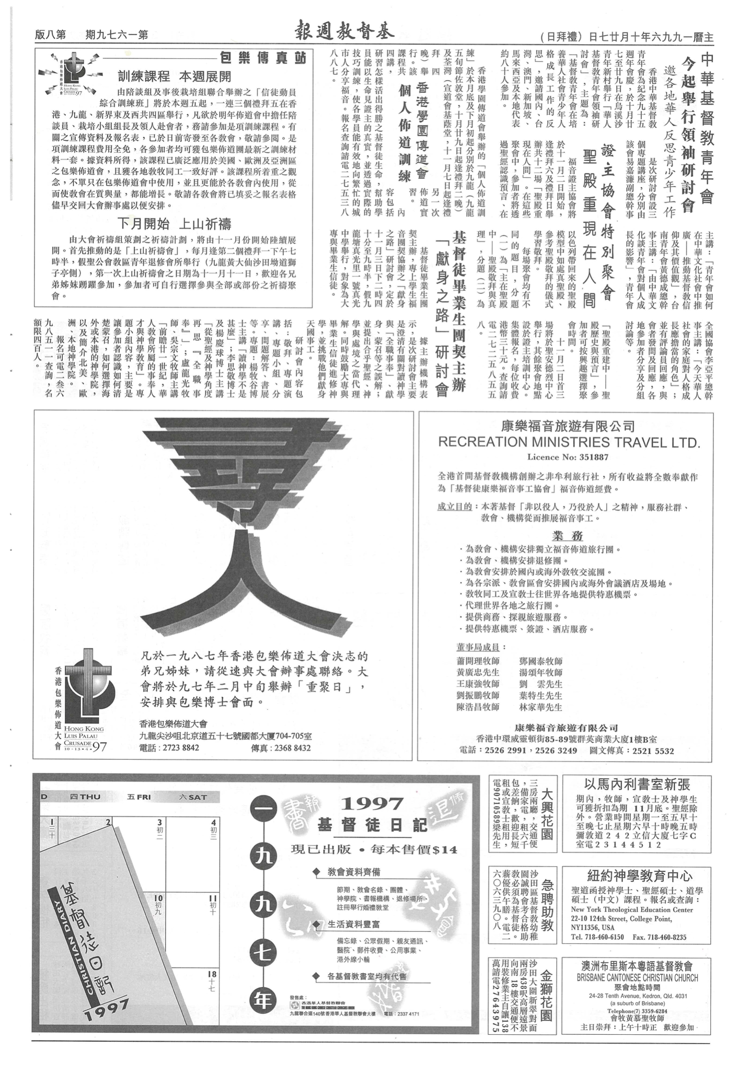 教會、機構短訊 第 1679 期(1996 年 10 月 27 日) ◎ 教會、機構短訊 分享: A A 簡 內容刊載於《基督教週報》1996年第1679期第8版揭頁版可點擊以下網址瀏覽:https://christianweekly.net/1996/19961027/19961027.html