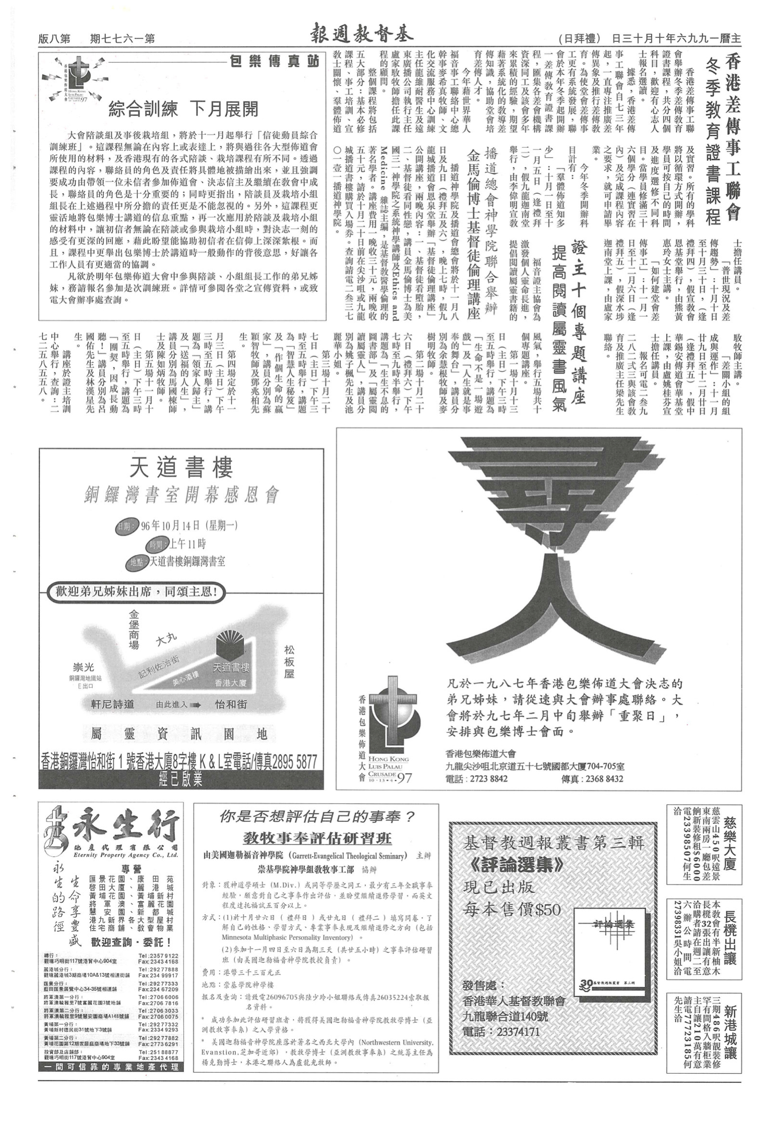 教會、機構短訊 第 1677 期(1996 年 10 月 13 日) ◎ 教會、機構短訊 分享: A A 簡 內容刊載於《基督教週報》1996年第1677期第8版揭頁版可點擊以下網址瀏覽:https://christianweekly.net/1996/19961013/19961013.html