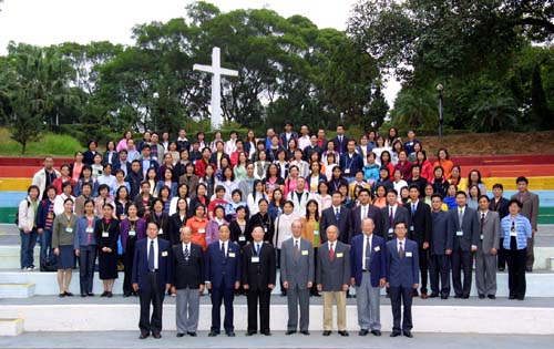 當日上午十時前,兩輛旅遊車接載幹事同工及傳道部同工組委員等浩浩蕩蕩地抵達浸會園宗教館,而廣州市之同工們已在禮堂就座,在開營禮開始之先,傳道部同工組組長黃良日牧師擔任主席,他請香港之同工們與廣州市同工們首先彼此握手問安,然後由傳道部同工組委員鄧活靈牧師帶領詩歌,繼而由傳道部同工組委員李慶堂先生致詞,他首先要感謝父神恩典,在一年之內竟有兩次機會讓廣州及香港兩地同工相聚,當回顧過往的日子,神藉著香港華人基督教聯會「堅持」,使幹事培訓聚會得以由零二年開始至今持續舉行,好使我們這一群「後勤工作者─幹事」仍有培訓,進修及相聚機會。傳道部部長張福民牧師講述及詳細介紹「祝福香港大行動」已在十一月一日展開,不單在明報及都市日報全版刊登廣告,更在巴士之「Road Show」、火車、地鐵等刊登廣告,好讓我們一起向社會宣告「祝福就在今天」,讓我們把握機會祝福您身旁的人,讓我們一同把咒詛變成祝福,令社會祥和,人人生活愉快,每位出席者均獲贈祝福大行動之心意咭、原子筆及紙巾。跟著培靈專題聚會邀請香港華人基督教聯會副主席鄭昌國牧師擔任講員,他引用哥林多前書十二章十二至三十一節分享「各盡其職」,並勸勉眾幹事同工(一)事主態度要:1.委身、2.主動、3.誠實;(二)與同工關係:1.互相尊重、2.彼此包容;而牧師對幹事要:1.不要苛求、2.愛護關心;眾人在短短的時間內在靈裡獲益良多。因著今次之聚會有港穗兩地同工參加,因此,廣州市基督教兩會主席馮浩牧師擔任致謝詞,他感謝父神,讓廣州之教牧及幹事同工一行三十一人首次在港舉辦退修營,並能有此機會與香港之同工相聚,藉此培訓及交流成為廣州同工一個擴闊視野的機會,及增進穗港兩地同工之情誼,他更代表廣州市基督教兩會向香港華人基督教聯會仝人致送禮物,以表謝意,最後由張志華牧師祝福。