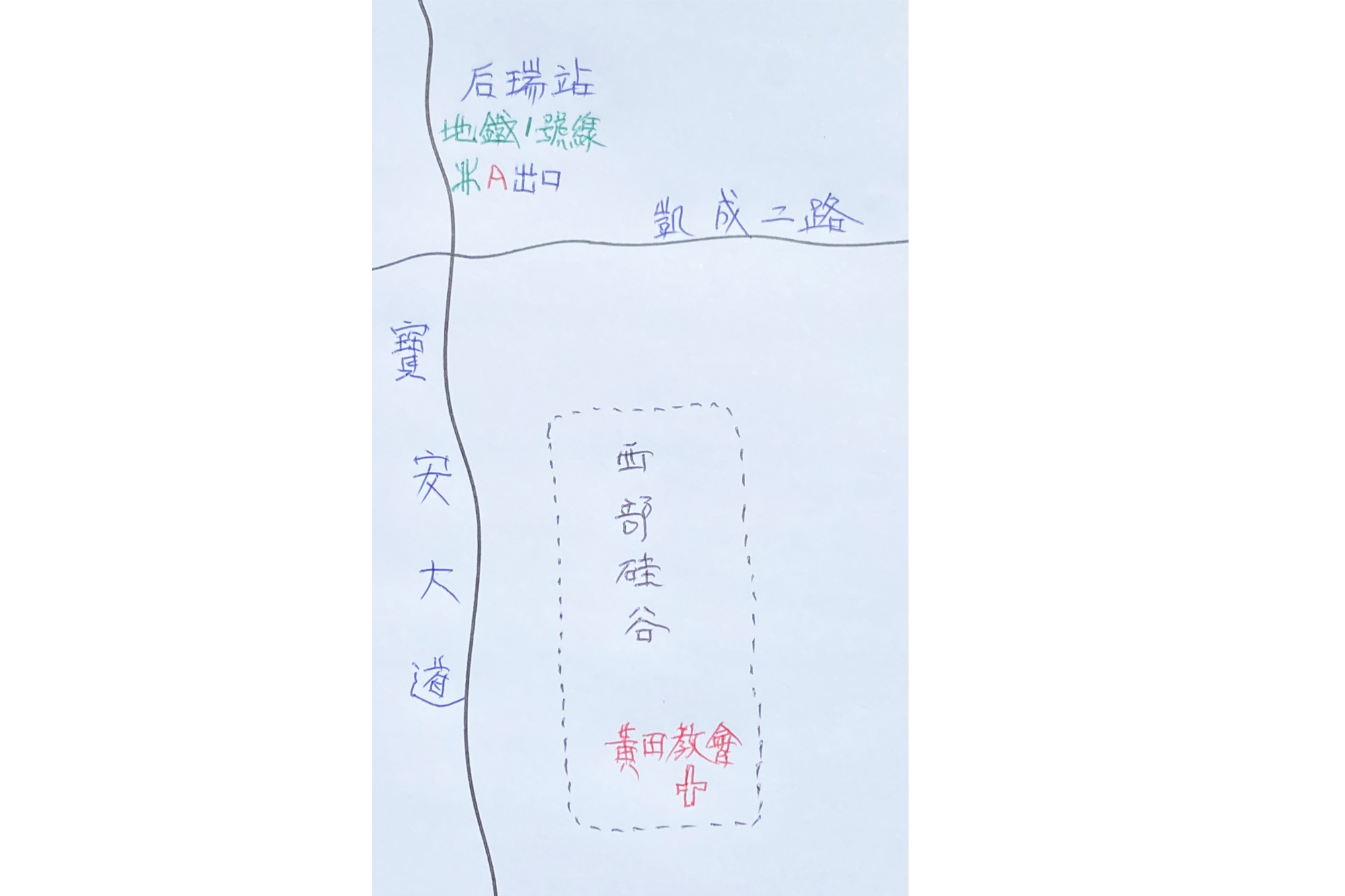 ▲深圳寶安區「基督教黃田聚會點」交通位置略圖 (2025年8月繪製)