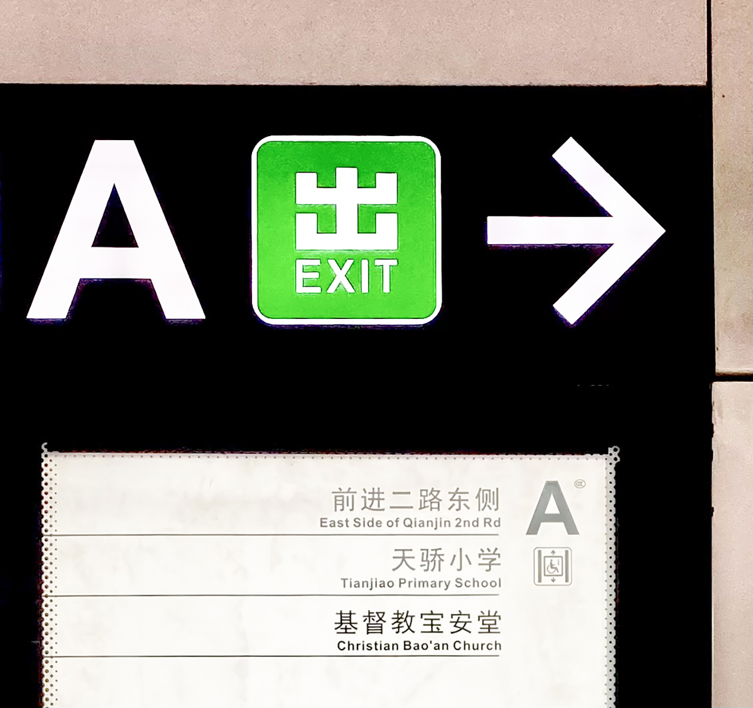 在流塘站,由列車月台層走上地鐵站大堂,當步向 A出口,走近標明地面街道、大廈及機構的指示牌時,會驚訝地發現,牌上竟有一列標示:「基督教宝安堂」。走過全片大堂,幾塊 A出口指示牌上,都有堂會的名字。這是筆者在深圳所遇上的、絕無僅見的獨例,教會於地鐵站的出口指示牌租位,點明教會的位置路線,力求方便尋覓者到來聚會。