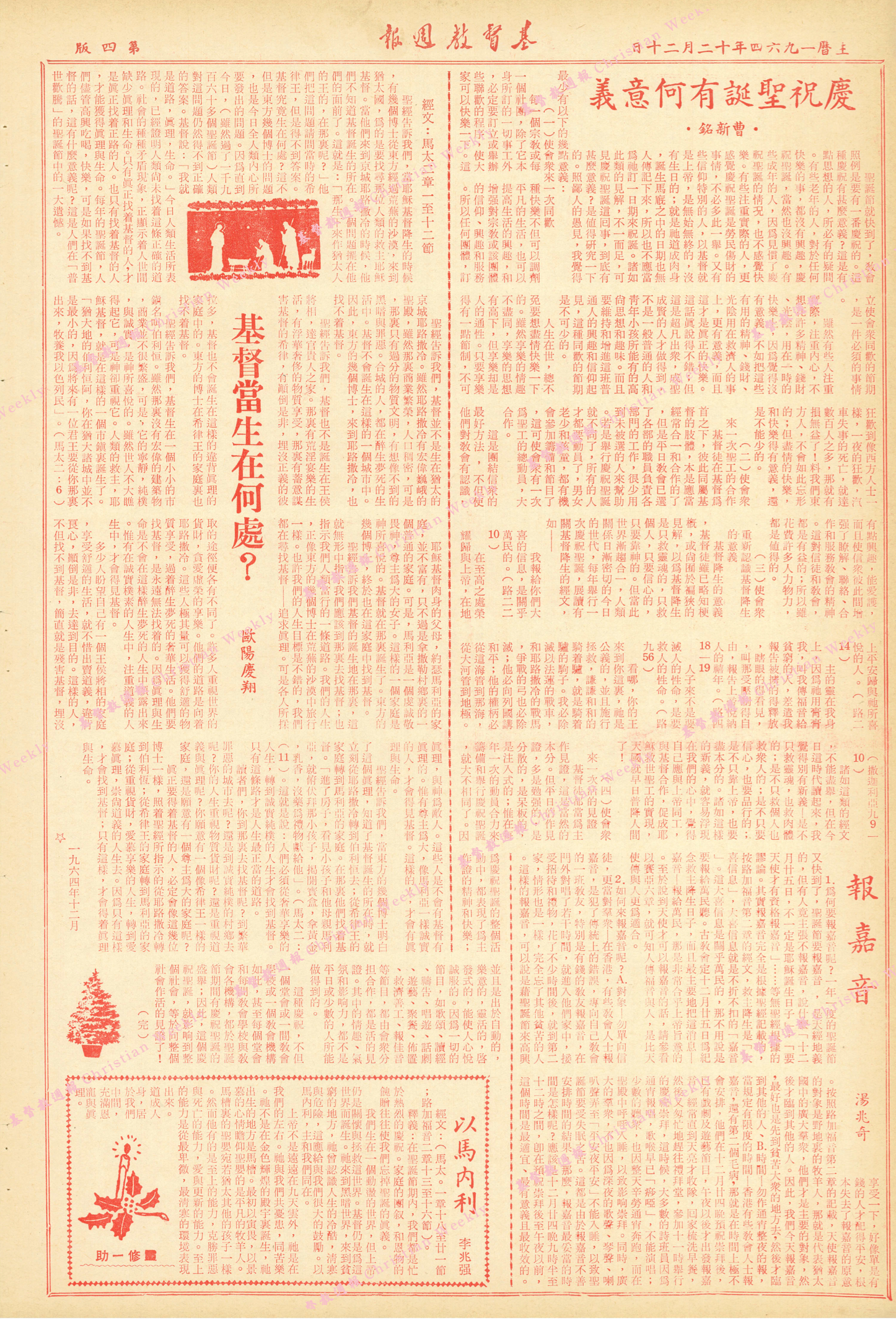 揭頁版可點擊以下網址瀏覽:https://christianweekly.net/1964/19641220/19641220.html