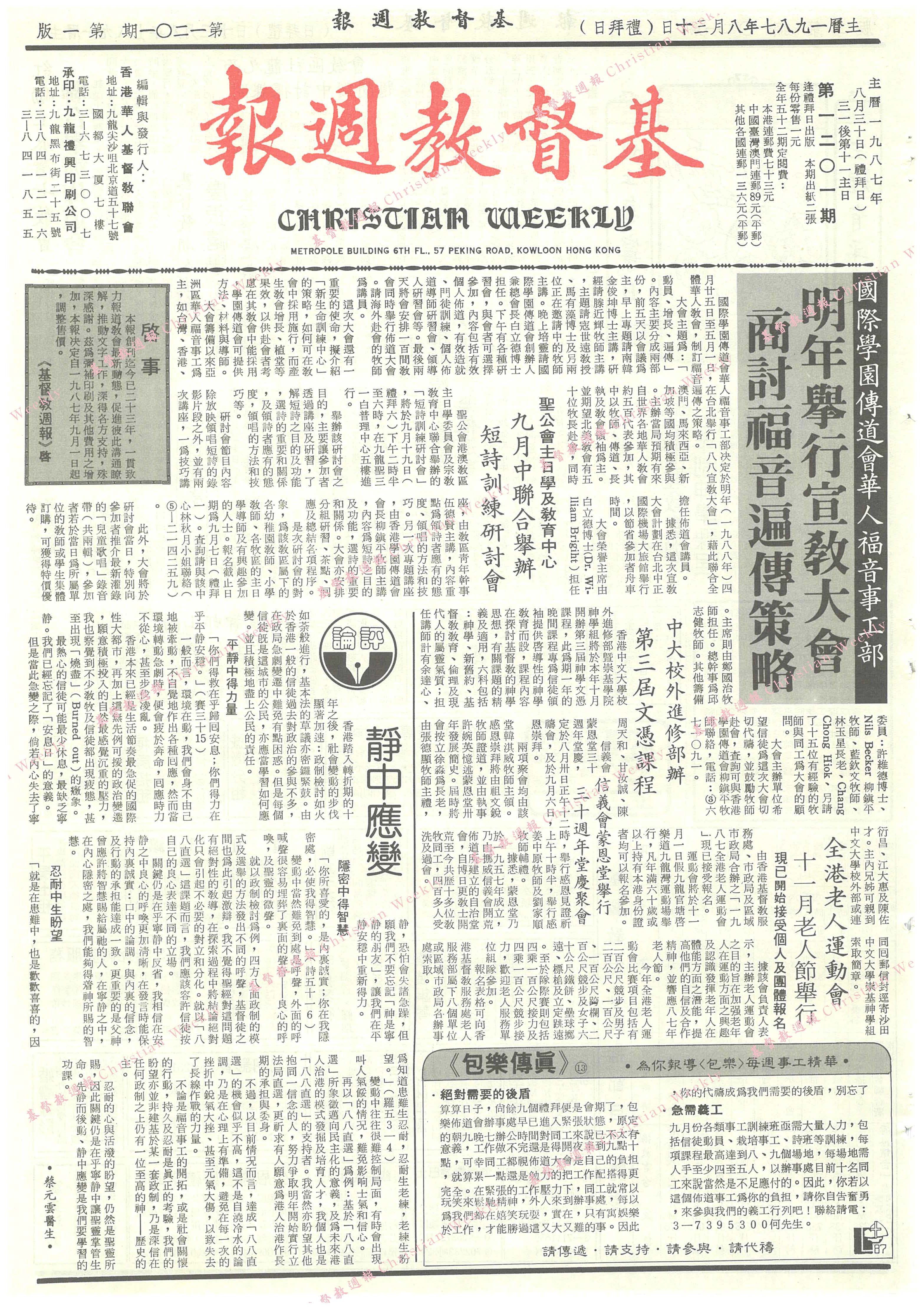 香港踏入轉折期的十年之後,社會變動的步伐顯著加速:政制檢討如火如荼般進行,基本法的草議亦密鑼緊鼓。由於香港一般的信徒過去對政治的參與不多,在政局急劇變遷中難免有點困惑。但是每個信徒既是這城市的公民,亦應當學習如何應變。並且積極地盡上公民的責任。