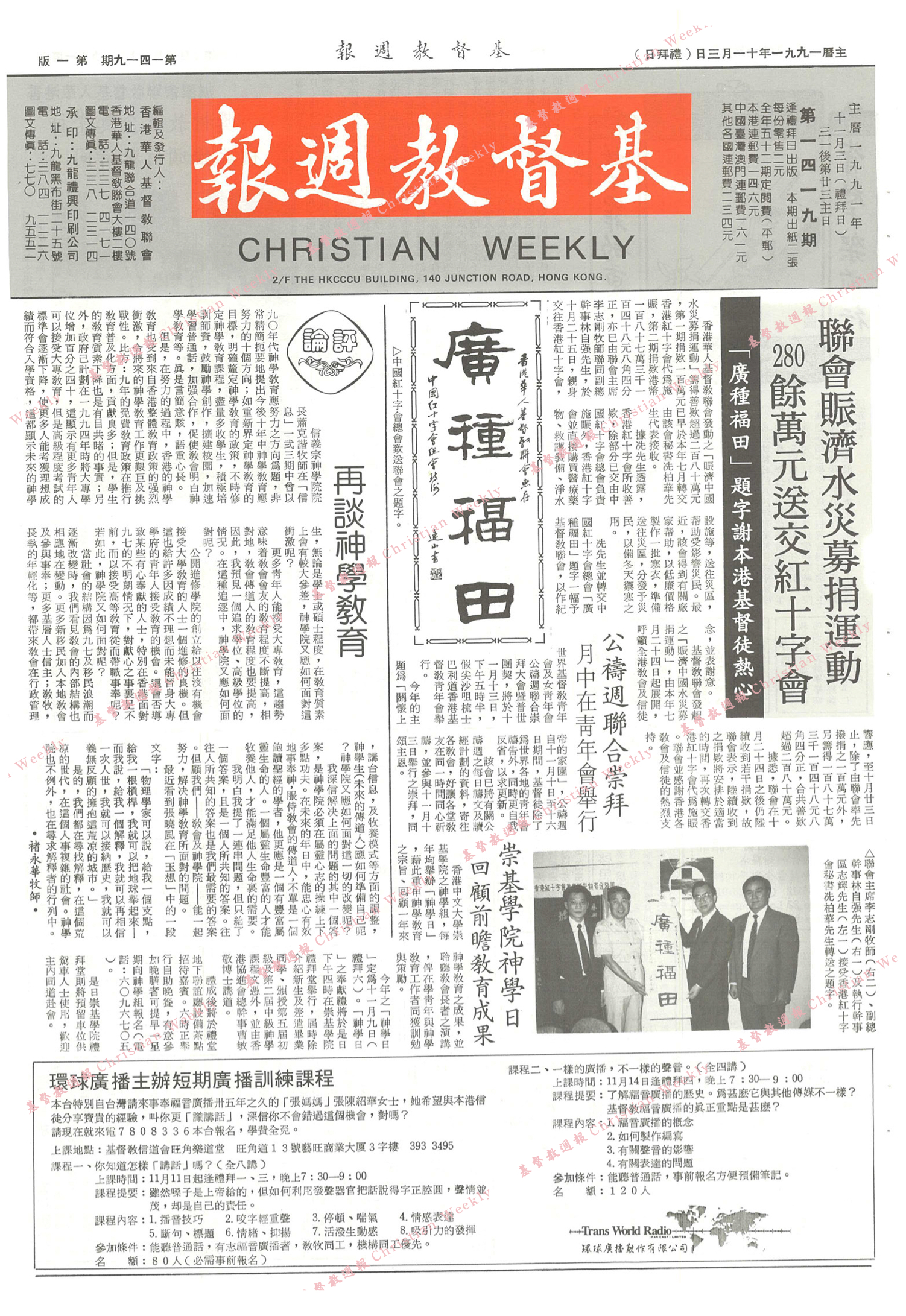 揭頁版可點擊以下網址瀏覽:https://christianweekly.net/1991/19911103/19911103.html