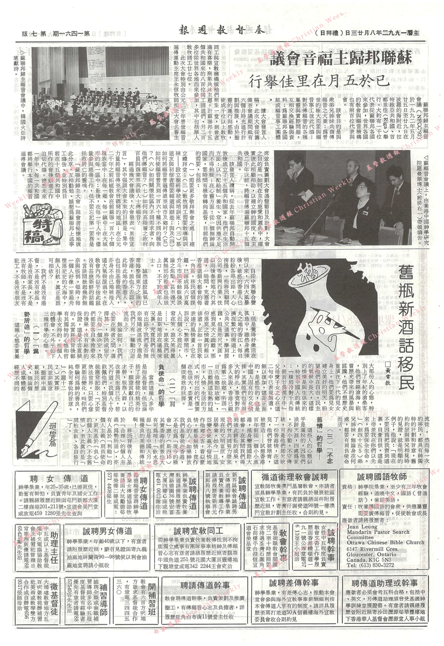 揭頁版可點擊以下網址瀏覽:https://christianweekly.net/1992/19920823/19920823.html