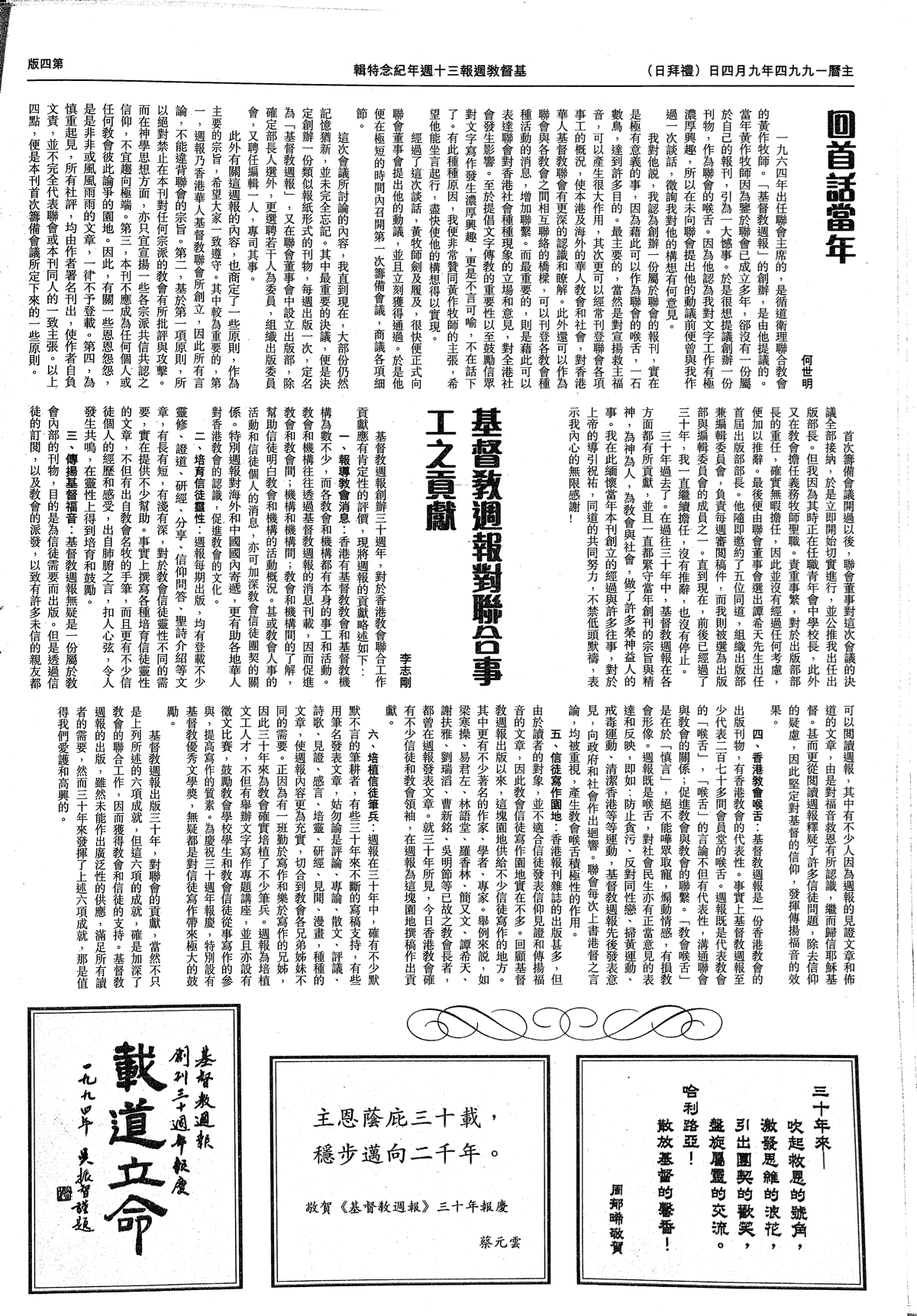 ◎ 基督教三十週年特刊 ◎ 何世明