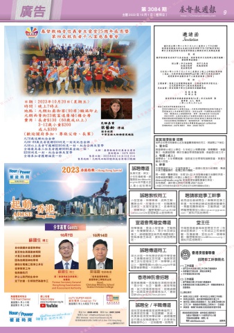 第 3084 期 主曆 2023 年 10 月 1 日(禮拜日) http://ChristianWeekly.net 廣告 9誠聘全/半職傳道浸信宣道會耀基堂誠聘傳道同工:負責家庭牧養、社區關顧、長者。具異象者須受神學訓練。請繕履歷至竹園北邨梅園樓地下(白普理社會服務中心)。註明應聘。招聘用香港神託會招聘基督教機構一直推動各項精神復康、青少年、社企、醫療、教育等服務,致力宣揚基督福音。現邀請願意一起肩負使命應徵者加入。最新空缺stewards.hk/recruitment誠聘傳道同工深水埗區一所有歷史的駐中學堂會,主責職青婦女及兒童,發展家庭事工及社區福音工作。神學學士或以上。履歷電郵[email protected]中華聖潔會麥傳道。只招聘用。誠聘教牧同工小型堂會,神學畢業,成熟主動,團隊合作,牧養青少年、初職團契及婦女,支援兒童事工、差傳佈道、關懷探訪。履歷電郵[email protected]宣道會富山堂招聘用聘請家庭事工幹事銘恩浸信會誠聘全/兼職家庭事工幹事,有神學訓練或相關經驗優先。需重視團隊精神、主動熱誠,請將履歷電郵至[email protected]。資料只供招聘用。堂主任中華基督教會海南堂聘堂主任(牧師或宣教師),七年或以上牧會經驗。牧養教導、堂校合作、領導策劃。履歷電郵至[email protected](資料只供招聘用)宣道會馬灣堂傳道神學畢業,委身小型堂會,主動熱誠,牧養關愛成人,青少年及婦女事工,請繕履歷至新界馬灣體育路1號執事會主席收,資料只供招聘用途。誠聘傳道負責兒童、婦女、少年牧養教導。繕履歷致[email protected]深井靈光堂人事小組招聘用筲箕灣浸信會 招聘我們正在尋找有事奉心志及著重團隊精神的同工,現誠聘以下崗位:1. 堂主任具道學碩士或以上學位,5 年或以上相關經驗,領導團隊、策劃事工、有講道恩賜,善於牧養並帶領教會發展,須處理行政工作。2. 牧師 ( 成人 )道學碩士,3 年相關經驗,協助堂主任帶領和發展教會,負責牧養成人牧區。3. 幹事中學畢業或以上,支援教會事工,一般辦公室及行政事務,熟悉中英文電腦操作,能獨立執行職務。周一例假,醫療津貼,年假 15-22 天及強積金僱主自願性供款。有意者請將履歷 ( 申請以上職位1,需提供抱負 ) 寄[email protected] 筲箕灣浸信會執事會主席收。如有查詢:請於辦公時間內致電 2567 3115。( 申請人所有提供的資料將予以保密及作招聘有關職位用途 )基督教週報 Christian Weekly 基督教週報 Christian Weekly 基督教週報 Christian Weekly 基督教週報 Christian Weekly 基督教週報 Christian Weekly 基督教週報 Christian Weekly 基督教週報 Christian Weekly 基督教週報 Christian Weekly 基督教週報 Christian Weekly 基督教週報 Christian Weekly 基督教週報 Christian Weekly 基督教週報 Christian Weekly 基督教週報 Christian Weekly 基督教週報 Christian Weekly 基督教週報 Christian Weekly基督教週報 Christian Weekly 基督教週報 Christian Weekly 基督教週報 Christian Weekly 基督教週報 Christian Weekly 基督教週報 Christian WeeklyChristian Weekly 基督教週報 Christian Weekly 基督教週報 Christian Weekly 基督教週報 Christian Weekly 基督教週報 Christian Weekly