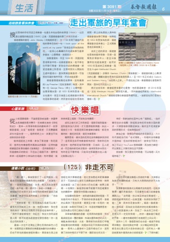 心靈絮語追蹤語言羣族教會搜記香港的早初英語正規教會,在產生本地自理的佑寧堂 (1844)、以及聖公會聖約翰座堂 (1849)之後,英國循道會的事工也漸次形成。循道運動的會祖 John Wesley ( 約翰衞斯理 ),在 1739 年寫下最能代表他的事奉召命的一句:I look upon all the world as my parish「我視全世界為我的牧區」。這項心志轟轟烈烈地感染牽引着衆多會友,心懷傳道,放眼四方。按教會資料,早至 1844 年,英國派駐香港軍旅中有一名循道會會友;他不單在住所舉行聚會,更致信宗派的傳道會,期望差遣教士到香港、並那時對洋人開放的五處中國港口,盡快開展宣教服侍。可惜那些年礙於條件所限,所求未能成事。循道會積極鼓動信徒事奉,設有義務的 Lay Preacher ( 信徒宣教師 ) 制度。其中有一位 George Piercy ( 俾士 ) 心懷中國,自費單獨出發,於 1851 年來到香港。他志在廣州,甚至日後建立起循道會在華南地區服事的基礎;然而當初逗留在香港的期間,俾士亦為軍政人員中的循道會會友舉行聚會。結果他在 1853 年受按為牧師,循道傳道會亦差來教士,正式開展香港及華南事工。由於上述的源流,循道會在香港的服侍對象,早期一直聚焦於軍旅中人;甚至日後獲得批地建造教堂,這所於1893 年落成的正規教會,既定名 English Methodist Church ( 英語循道會 ),亦稱作 Garrison Church ( 軍旅教會 )。 循道會的教士心繫漂泊的心靈,關顧流盪在香港的孤寂海員和軍人;至 1901 年正式成立 Sailors and Soldiers Home「海陸軍人之家」。不過在這之後,教會隨着社會發展而開放,面向任何英語人士。晚近這些年來,教會經歷多番定位重整:包括重建教堂,於 2018 年落成,定名 Wesleyan House「衞斯理大樓」;同時教會起用新名:Methodist International Church「循道衞理聯合教會國際禮拜堂」。這都旨在同行香港社會新一程。新樓入口鑲鋪舊日 Sailors and Soldiers Home ( 海陸軍人之家 ) 碑石 (2020 年 9 月拍攝。衞斯理大樓 (2019 年 11 月拍攝 )第 3091 期 主曆 2023年 11月 19日(禮拜日) http://ChristianWeekly.net 生活 6快樂唱走出軍旅的早年堂會李碧如區伯平(撰文、拍攝、繪圖)從小就喜歡唱歌,不論甚麼歌都喜歡。家裏帶去長樂戲院看芳艷芬、任劍輝主演的《梁祝恨史》,買來一本薄薄有歌詞的戲軌冊子,就那樣跟着唱,甚麼「偷眼望,偷眼望,只見艷麗嘅淑女在樓台望⋯⋯」唱得朗朗上口,其實並不知道歌詞說些甚麼。後來姐姐迷上林鳳,參加了影迷會,我是跟班,當然也有機會看林鳳演出的電影。記得有齣根據童話故事改編的《玻璃鞋》,是時裝歌唱片,照着戲軌印的歌詞,不但自己唱個不休,還帶領弟弟一起唱戲中小神仙的合唱曲。有時懷疑,後來弟弟愛上唱歌,不知有沒有關係。成年之後忙於工作和家庭,唱歌早拋到腦後,直到退休加入詩班,才又重燃唱歌興趣。如此一唱接近十年,每個星期回教會練詩獻唱,都是快樂時刻,擔任詩班員,確是快樂事奉。離開香港,最失落的是再也沒有機會參與詩班了。溫哥華並非所有教會都有詩班,我家附近的就沒有,他們都是敬拜隊那種,只由四、五人組成,而且唱的都是新派聖詩,旋律對我多半陌生,有時甚至不懂得唱,只能呆在那裏聽其他人唱,比較難以投入。幸好,我參加的社區中心有「唱歌組」,他們聲明並非合唱團,對組員沒有任何音樂方面的要求,只要愛唱歌就歡迎參加。雖然並不是渴望參與的那種形式,但能夠唱就好。參加之後,發覺他們選唱的多是歐西五、六十年代曾經流行的「老式情歌」,年輕時沒有機會大唱特唱,但由於都曾經流行,旋律並不陌生,加上可以上 YouTube 搜尋細聽,再加努力練習,所以要跟上大夥兒倒也並不困難。就這樣,我又重拾兒時興趣,可以每週一天大唱特唱了。《捨得》「啊!啊!」像被狠狠打了一記悶棍般,甄曉易忍住腦袋的脹痛和想吐的衝動,「其實我,嗯,一直想回報公司呢,您看,我天天在改善不足呢,能不能,嗯,請求您,多給一次機會⋯⋯」她結結巴巴地對大半年來受到的精神折磨表示感恩戴德,老闆那張漠然的臉上分明刻着:「你非走不可。」「或者這樣,等一等再通知入境處可以嗎?讓我先找到新的工作,唉,您是知道的,我在香港的身分,要有公司聘用才符合逗留條件啊!」「我們不會這樣幫你,你記住,我沒欠你阿叔甚麼人情,都不知道為甚麼當初要答應他!你一直是公司的負累!」最後一次在牛池灣坐上開往西貢的綠色小巴時,老闆那溫文爾雅卻彷彿藏着無數利針的聲音,仍在不停地挑撥她曾經的傷口。畢竟做生意之前以前在公司裏沒幾個人找她吃午餐,大家都以為她是老闆的親戚,只有大大咧咧的詩詩不太在乎。女青年會的服務式公寓雖然沒有廚房,但乾淨整齊,還不用簽長約,可是優惠房價只給教會推薦的人。「沒問題,你以後就來這兒聚會吧。」詩詩把她帶到附近一座教堂裏,牧師很快寫好了信。「噢,原來你是會友啊!」曉易一臉感激,也一臉狐疑,因為從沒見過詩詩在吃飯前禱告。「從小就跟着家人來,別送了,快去找工作吧,星期天不一定見到我喔。」詩詩一邊做着打電話的手勢、一邊匆匆橫過窩打老道趕巴士回公司。直到十二月,整個香港仍在谷底。曉易不停投寄求職信,面試地點從中環、尖沙嘴延伸到荃灣,都是些比舊公司大很多的辦公室,但所有人一聽說她要海外雇員的身分就都搖頭。 (下期待續)曾經在某大學教過書,他比堂伯看起來更像謙謙君子,可說的話比當年花姨傳達的更帶刺,刺