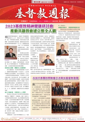 編輯及發行人:香港華人基督教聯會 督印人:陸幸泉 地址:九龍聯合道140號香港華人基督教聯會大樓二樓 電話:2337 4171 圖文傳真:2338 2314網 址:http://ChristianWeekly.net 電子郵箱:[email protected] 承 印:國強印刷制作公司 作者文責自負第3092期 主曆2023年11月26日 逢禮拜日出版.本期出紙二張半.每份零售五元正本期推介 告別劏房路遙遙.小沿 p.2∣宣教藝術 p.4-5∣遺產的煩惱.龔立人p.72023基督教精神健康研討會推動共融教會建立整全人觀內地代表團訪問聯會交流兩地基督教發展精神健康問題愈趨普及,教會除了要接觸精神健康復元人士外,教會內亦有不少隱藏個案,建立「精神健康友善教會」將更有效進行牧養關顧。浸信會愛羣社會服務處、觀潮浸信會及香港整全普及精神健康協會於11月17日,在觀潮浸信會主辦「2023基督教精神健康研討會」,探討推動共融教會的挑戰與實踐。香港整全普及精神健康協會主席黃德興教授分享,有病人是基督徒,雖然他正經歷苦難,但仍然得到平安、能力戰勝一切。他續言,縱然經歷病患、勞苦重擔,病人仍可擁有豐盛生命,所以籲教會必須彼此提醒,尤其面對受精神病患挑戰的羣體。教會彼此提醒 關顧身心社靈需要他引述數據指,常見精神障礙影響20%成年人,嚴重精神障礙則影響1-7%的成年人。由於精神障礙在生命早期開始,並往往是慢性的,三分之一的殘疾更是因精神疾病造成,可見情況十分常見及難以忽視。至於香港方面,青少年自殺數字、離婚數字、家庭矛盾情況日益嚴重,他認為不能單靠醫生處理精神健康問題,坊間有不少機構、事工計畫提供輔導支援服務,這些機構都是不可或缺的社區持份者。他又指,當年輕人在家庭、學校都生活得不快時,教會正可成為第三空間,更可關顧其身、心、社、靈的需要,鼓勵他們反思生命價值和意義。建立共融教會 回應復元人士需要香港城市大學社會及行為科學系助理教授關志健教授以「關顧同行,共融教會」為題,指復元人士返教會或能幫助其成長,但必須衡量他們能否進入教會,以及參與教會及團契所有活動,甚至賦權予他們,否則只會適得其反。他解釋,事實上有教會將復元人士拒諸門外,即使有機會參與崇拜及團契,如被弟兄姊妹排斥,結果只會令他們覺得自己是異類,病情反而變得更差。因此他強調,復元人士返教會不只是「進入」教會,而是與所有人一樣,參與崇拜、團契、教會以外的聚會,甚至私下相處也要與常人無異。受傳媒渲染,社會大眾常標籤復元人士,包括棄,定能成功。鼓勵參與服侍 推動精神健康友善觀潮浸信會主任牧師鄭佑中牧師則分享教會的角色與責任,他從教會觀的角度闡述,教會在地上不是要拯救世界,因拯救是唯有上帝的工作,教會的責任是在城市中作復活盼望的見證。他強調,教會需於行動中見證信仰,在講壇以外讓人看見基督,同時亦不能忽略宣講,否則只會徒然虛空。他表示,教會推動精神健康友善,關鍵在於鼓勵弟兄姊妹親身參與服侍,化感動為行動,在服侍中經歷成長。「很多時並非我(牧者)沒有宣講,而是他們沒有鼓起勇氣踏出第一步回應。」他又以「成人」、「成羣」、「承擔」、「承傳」作為精神健康友善教會的框架:「成人」──教會要建立整全人觀,重拾作為人的尊嚴與價值;「成羣」──讓人感受到信徒成羣的見證和感動;「承擔」──不是倚靠個人能力,而是讓聖靈在自己身上作工;「承傳」──轉化由個人生命開始,以致改善羣體的關係,從而改變組織系統和教會文化。基督徒也會對他們存有偏見。他坦言,若教會弟兄姊妹因較少接觸復元人士,難免有所誤解,最重要是承認自己的不足。他又指,如果只轉介復元人士至某些特定堂會或組織,結果將令他們無法與其他人交往和分享信仰,反而不利共融。此外,過分關心、保護和憐愛也不適宜,因不希望他們只是服務接收者,相反應鼓勵他們多參與,甚至擔當幫助人的角色,彼此平等相處。「作為信仰傳遞者,要作為流通管子,將上帝的愛傳達他人,但要反省有否好好回應復元人士的需要。」他建議,規模較大的教會可以雙軌制方式進行牧養,即復元人士有特定團契小組,同時也容讓他們參與一般聚會。至於弟兄姊妹方面,應學習尊重差異,包容一些在旁人眼中看似古怪的行為,他不諱言,推動共融初期必定會發生不愉快事件,但只要堅持不放廣州市民族宗教事務局代表團一行11人,於11月7日到訪聯會交流。該局黨組書記、局長汪茂鑄在會上指,粵港兩地本是一家,文化傳統上同根同源,因此社會各界包括基督教界,都應該多作交流。他又鼓勵聯會執行董事到訪廣州,了解內地社會及基督教發展,加深彼此認識。此外,上海市基督教三自愛國運動委員會代表團一行6人,亦於11月8日到訪聯會交流。該會主席徐玉蘭牧師在會上提到宗教中國化的背景和進程,又與聯會執行董事對談老人院事工發展近況,特別提到臨終關懷愈來愈備受社會關注。關志健教授鄭佑中牧師黃德興教授廣州市民族宗教事務局代表團與聯會執董合照。上海市基督教三自愛國運動委員會代表團與聯會執董合照。