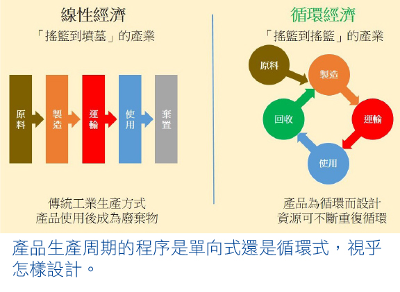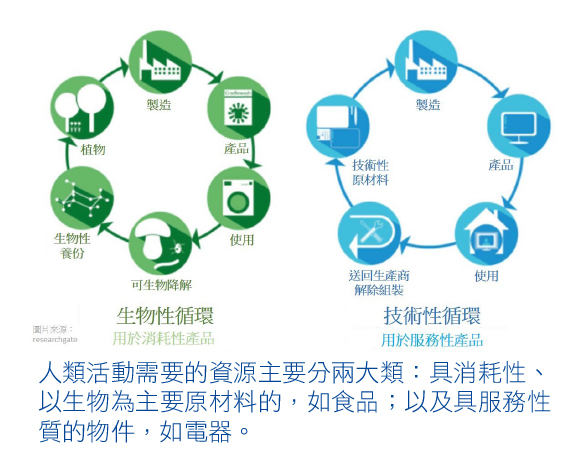 日常生活我們很難完全避免食品包裝或其他非有機物的材料,當兩個循環加以配搭,就能得出更符合自然循環的運作模式: