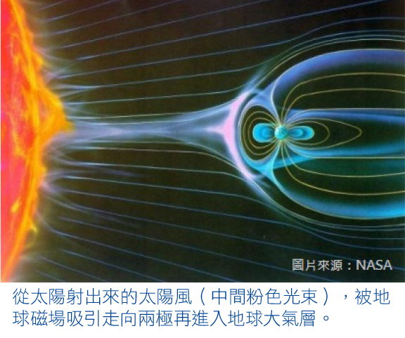 地幔下有高溫的地核,因其流動特性加上鐡的成分,令地球成為一顆巨形磁石。別小看它,地球南極與北極之間的磁場能引導來自太陽的帶電粒子(簡稱太陽風)聚集在南北極才衝進大氣層。除了形成極美的極光,還預防影響我們日常需要用電波的活動,如通訊和定位,甚至減少生物因受太陽風直接衝擊對細胞造成的傷害等。不是每顆行星都有磁場,地球的磁場是我們很重要的保護罩。