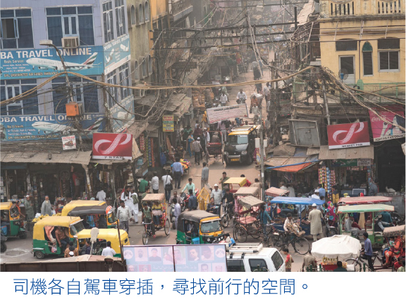 旅館在城市的舊區,樓房破舊。道路失修,路面很多破洞,沙塵滾滾。擠滿乘客的巴士殘舊不堪,像隨時會暴斃在兇猛的陽光下。除了大小車輛在趕路,路上還有大象和驢子拉着貨物,牛、羊和狗在路邊草叢裏找食物。很少交通燈,司機只能各自駕車穿插,拼命找前行的空間,險象環生。