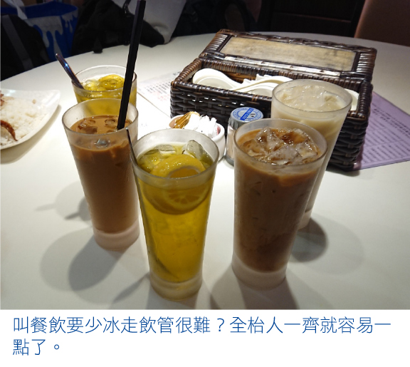 更何況,凍飲和製冷背後耗用的資源其實很多:製作冰塊耗電量很高,如高速製冷讓水結成冰,亦需要低溫倉庫儲存及凍鍊運輸。我們平日喝凍飲,大部分時候都會剩下冰塊,變相浪費了製冰的水和能源。