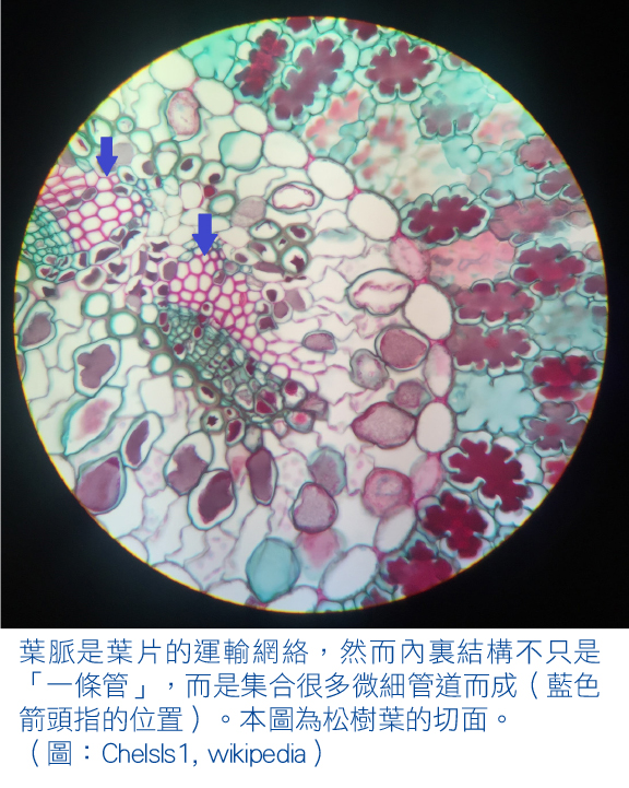 植物裏的運輸系統是大量直徑細小的管道,稱為維管束,負責將從根部吸收的水和葉片生產的養份向上運送至植物各部分。只是植物有一定高度,單靠表面張力與毛細管作用,並不足夠讓水爬升至全棵植物。