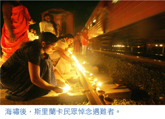 二千公里外的印尼西海底發生9級地震,引發巨大海嘯,20米高巨浪沖擊印度洋周邊。斯里蘭卡島所有海岸像被水怪吞下,特別是東部和南部,數以萬計的人被拖進海中。