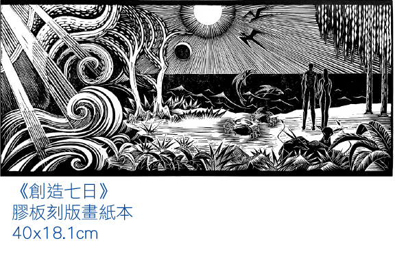 《創造七日》這版畫,創作於忙碌之間,此構圖頗有潛力,將來有機會當以此構圖為基礎創作大型作品。然而,現在小弟要先休息片刻,阿們。