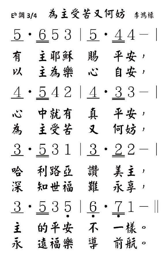 感謝上帝,在受苦的時候,信靠上帝的人不僅能「以主為樂心自安」,如先知哈巴谷所言:「雖然無花果樹不發旺,⋯⋯田地不出糧食,圈中絕了羊⋯⋯;然而,我要因耶和華歡欣,因救我的上帝喜樂。主耶和華是我的力量;他使我的腳快如母鹿的蹄,又使我穩行在高處。」(哈三17-19)並且我們還有「苦楚終必過去」的盼望。正如世上沒有長存的福樂,人世間的苦痛也終必過去!