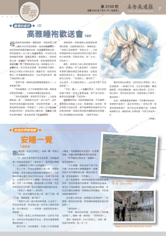 第 3100 期 主曆 2024 年 1 月 21 日(禮拜日) http://ChristianWeekly.net 薈 7萃母親缺席前的最後一個聖誕節,四姐弟買了她心儀的米白色真絲睡袍,送她做聖誕禮物。這是母親穿過最華麗的衣裳,長長連身寬鬆衣裙,將母親裹成一名小婦人般端莊貴氣,米白碎花滾過袖邊和裙腳,細緻又柔美;每個晚上,母親經過之處,會揚起一陣柔和的風,將絲質睡裙吹得蓬蓬款動。懷了雙胞胎姐妹之後,母親辭去工作,全職持家,終日埋首家務事,穿得簡便不講究,偶有正式場合才稍為妝扮;隨着年紀,她愈來愈嚮往一件美麗優雅的睡衣;兒女們省吃儉用,圓了她無邪的心願。「真想不通,媽媽為甚麼獨獨喜歡睡衣?」小弟唯眷不解。「因為睡覺是一天下來最重要的活動,媽媽當然要穿漂漂囉!」大弟唯岸興奮地發表高見。「對你是最重要,對我們可不是呢!」大姐唯願瞄他一眼。「媽媽都待在家,很少出門,自然想有件舒適美麗的居家服,穿給我們看嘛!」她揚起細長的娥眉,得意極了!少她十五分鐘的妹妹唯盼卻明白:母親因為心臟毛病,預備自己隨時在夢中離世,要為他們留下最美的回憶。能夠在家,在自己的牀上,安睡一覺,是莫大的幸福。「K,你的手掌手腕手背全是紅點,你有敏感嗎?抑或被甚麼咬了?要起來了,我們要去轉機了。」同事馬可(Mark)在耳邊說。早上 5 時,印度孟買機場大堂一角,睜開惺忪睡眼,很多昨晚在四周的睡伴都醒來了,大家開始推着拉着行李向不同方向走,機場不是目的地,大家都在等待早上轉機。我們昨夜 11 時到達,今早 7 時半轉機,機場旅館十分昂貴,而且來來回回也花時間,便決定隨便找個舒服的角落。「休息了一點嗎?」馬可問。「嗯,失去知覺四五個小時,醒了又睡,睡了又醒,醒醒睡睡,算不錯了。」「我就不太好,燈光整夜都亮着,太光亮了。而且愈夜愈凍,我沒有外套。有很多人像我沒有睡,很大聲說話。……你真棒,這環境竟能像小孩睡着。」「哈哈,這是上主特別的恩典,以前也不能的,你多些出來這個世界走走,或者也會慢慢學懂這新技能。」馬可大笑,大家都醒來,拉着小行李箱跟着人羣走,內陸機場在半公里外,街燈還亮着,外邊比像雪櫃的候機大堂舒服。「你手腕的紅點很多,痕癢嗎?」馬可有點擔心。「少少痕癢,相信是做了蚊子的大餐,昨夜有幾次朦朦朧朧中,像聽到蚊子在耳邊嗡嗡叫着。應該沒有大礙,就是痕癢幾天,不用擔心。」除了孟買機場,曾過夜或滯留而睡過的機場很多,包括泰國曼谷的機場、美國紐約的機場、海地太子港的機場、南非約翰內斯堡的機場、肯尼亞內羅比的機場、阿聯酋杜拜的機場、印尼雅加達的機場等等。女兒還小的時候,曾開着玩笑問她們:「你猜猜:瞓你的牀舒服,抑或機場候機室的梳化椅舒服?」「我們的牀!」「那麼,瞓你的牀舒服,抑或飛機上頭等機位舒服?」猶豫一會,她們說:「我們的牀!」是的,能夠在家,在自己的牀上,安睡一覺,是莫大的幸福。每一天!每晚睡前,母親會細心梳整銀絲漸增的長髮,在鏡前端詳良久,喃喃唸起:「新婦已妝飾整齊,等候丈夫。」大姐和兩個弟弟以為她期待與死於潛水意外的父親相逢;而唯盼深知:這「丈夫」另有其人。最終,母親穿上她心愛的睡袍與世辭別。葬禮在一所小教堂舉行,四姐弟和寥寥可數的鄰里及教會朋友,在萬里無雲的週末早上,歡送她返天家。老牧師沈沈地唸:「信我的人,雖然死了,也必復活;凡活着信我的人,必永遠不死。你信這話麼?」「不信,騙人!」小弟衝口而出。大姐立刻把他擁入懷中,他馬上全身抽搐,傾下滂沱淚雨;會眾也淅瀝淅瀝,下起雨來。瞻仰遺容時刻,四姐弟圍着母親,不忍離開。逝者蒼白的臉施上淡妝,唇邊殘留一絲笑意,零星華髮已染成烏黑,眉宇輪廓間映照着四名子女的點滴神韻,柔細的真絲睡袍纏裹着她的弱軀;死亡是很實質的肉身停擺,一點都不神祕。高雅睡袍歡送會隨老牧師走出教堂,往附近的火葬場去;四人低垂着頭,一路緘口不言。天空忽地變臉,飄過幾陣雪,而且愈飄愈重,演成大雪紛飛。五月天,春已過半,殘冬卻折返回來;英國氣象之不尋常,極為尋常!此刻,唯願摟緊瘦骨嶙峋、不停顫抖的妹妹,唯眷將外套脫下,蓋在哥哥肩上。須臾之間,過境的雪漸漸遠行,陰冷的空氣慢慢升溫。太陽探頭鳥瞰大地,滿眼愁痕;天際的雲,不禁又多起來。(待續)安睡一覺▲人在旅途上,想像能夠在家,在自己的牀上安睡一覺,是莫大的幸福。麗群趙煥明飄零的音符窮遊世界學無窮人羣走,內陸機場在半公里外,街燈還除了孟買機場,曾過夜或滯留而睡過的機場很多,包括泰國曼谷的機場、美國紐約的機場、▲人在旅途上,想像能夠在家,在自己的牀上安睡一覺,是莫大的幸福。(2)▲數數曾過夜或滯留而睡過的機場可真多啊。Christian Weekly 全職持家,終日埋首家務事,穿得簡便不講究,基督教週報過袖邊和裙腳,細緻又柔美;每個晚上,母親經過之處,會揚起一陣柔和的風,將絲質睡裙吹得蓬蓬款動。懷了雙胞胎姐妹之後,母親辭去工作,Christian Weekly 親缺席前的最後一個聖誕節,四姐弟買了她心儀的米白色真絲睡袍,送她做聖誕禮物。這是母親穿過最華麗的衣裳,長長連身寬鬆衣裙,將母親裹成一名小婦人般端莊貴氣,米白碎花滾過袖邊和裙腳,細緻又柔美;每個晚上,母親經親缺席前的最後一個聖誕節,四姐弟買了她基督教週報高雅睡袍歡送會Christian Weekly 基督教週報主曆 2024 年 1 月 21 日 Christian Weekly第 3100 期 (禮拜日)Chri