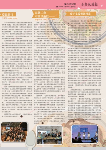 第 3105 期 主曆 2024 年 2 月 25 日(禮拜日) http://ChristianWeekly.net5疫旅前行方達賢(嗎哪事工總幹事)2019 年中旬開始,香港因為社會事件接連疫情爆發,經歷了一場過去無法想像的風暴,香港由小市民的生活到經濟大環境,均受到如海嘯般的影響及破壞。眾所周知,餐飲業因人手、租金、食材難以控制的關係,一直都難以經營;加上疫情時市民減少外出,餐飲業界更需要應對政府不同的防疫政策,例如晚市關門、座位減半及距離限制等,若單談營運角度,的確十分困難艱辛。而嗎哪餐飲的部分,看似是我們的主體,但實際上是我們作為與街坊建立關係的渠道。當整個香港餐飲業都在危機之中時,我們反而迎來一個大的擴展,疫情令到有需要的街坊朋友急增──我們於2019 年 10 月前後只是服務 30 位無家者及 8 位長者,照顧他們的日常飲食,服務十分有限;但到了 2020 年中旬,我們一個月派發的社關食物經已高達 15000 份,服務的羣體包括無家者、劏房家庭、清潔工、少數族裔及獨居長者,恆常接觸的會員近 1000 人。我們從關係及受惠人的需要出發,從而發展他們需要的事工,例如送飯、補習、社區大廳、中醫、籃球等。我們的社關開支由 2019 年全年約 4 萬元,至 2023 年已經增至 1000 萬,即是短短數年間增加了 250 倍。讓我們可以於逆境中大步前行,當中最大的神蹟是上帝令香港人與我們同行,我們的奉獻是由不同社區朋友聚沙成塔而來。無數五百、一千元的個人奉獻,如同機構名稱「嗎哪」一樣從天降下,不多也不少,我們的資金從來沒有盈餘,但亦感恩至今也沒有負債。過去,我們的服務包括從疫情中回應,例如接待失業朋友,送上防疫及食物包予受隔離令影響的人士等。疫後,大家慢慢回復正常生活,但人心仍然失去盼望。所以我們暫停晚市餐廳服務,改為將地方及時間用作開展社區大廳,聚集坊眾晚飯傾談,目前晚上都有不少家庭(近 60 人)參加。未來,我們會於藝術、音樂及康體等範疇開展事工,目的是在這些正向的活動上,聚集不同社區朋友,並於訓練及練習時投入不同美善元素,如團隊合作、忍耐、恆心等。以籃球事工為例,目前已經聚集了 30 位年輕人,正逐步建立他們的信心及投入福音元素。嗎哪事工過去 4 年疫旅前行,2024 年後的未來,仍然有請大家多多同行。五餅二魚不單只飽肚⋯⋯林建榮(飲食業福音團契署理總幹事)許多人問,疫情後「五餅二魚美食料理」的生意如何?老實說除了聖誕節外,其他日子都是捉襟見肘。疫情後面對經濟下調、港人北上消費、舊顧客移民等,我們的生意不到疫情前的一半,因此有些人問何不考慮趁早結業減少損失?那我會告訴他們,「五餅二魚美食料理」是一個事工,而不是單單一個為自己飽肚的生意。大家都會想到五餅二魚的神蹟高潮,就是耶穌怎樣用五塊餅、兩條魚讓 5000 人肚皮得飽足,然而重點就是「倚靠上帝不愁冇得食」?當我們查看上下經文就會發現,絕對不是飽肚這麼簡單。馬太福音十四章 3-12 節提到希律藉辭殺了施洗約翰;路加福音九章 7-9 節更提到希律注意下一個目標耶穌,因此耶穌「暗暗地離開那裏」,跟着才到五餅二魚神蹟發生。似乎這裏暗示希律想向耶穌下手,耶穌就「暗暗地」離開。面對困境我們應靈巧像蛇,不用正面對抗,離開一下也是解決方法。然而耶穌的跟隨者繼續跟隨祂,於是耶穌憐憫他們,除了教訓和醫治外,更使他們吃飽。我們看見耶穌因世人需要,即使面對困境,仍然繼續宣講福音信息。因此約翰福音六章 41 節五餅二魚神蹟後,耶穌宣稱自己是「從天上降下的糧食」,正正在呼應五餅二魚神蹟不單是叫人肚皮得飽足,而是帶出耶穌才是世人的救世主。疫情是我們遭遇的患難,即使疫情過後大家在經濟下調的不景氣中生活,許多商舖結業,樓市股市下跌,人心惶惶,留下來的港人正面對一個比疫情更大的難關。或者我們都會為着自己的需要而打算,就如「五餅二魚美食料理」在這時候結業,也是人之常情,可是這段時間的難關,不正正是人需要福音的時候嗎?正如耶穌憐憫祂的跟隨者,就將天國福音傳給他們。疫情期間,「五餅二魚美食料理」不單有製作到會的工作,更利用「有福共享」平台製作節期食品,如月餅、稯、新年糕點等免費給予教會和機構派發,鼓勵大家關心社區。疫情後,我們不單沒有停下來,還繼續增加節期食品數量,滿足願意關心社區的教會和機構。不單我們自己做,更在「有福共享」招集一羣專業廚師們,一起做義工關心社區。五餅二魚神蹟最吸引當然是耶穌「愈派愈有」,餵飽了五千人,然而上帝的心意卻是希望萬人得救。今天我不知道「五餅二魚美食料理」是否「愈派愈有」,但我卻認為在這個世代,人們更需要耶穌,這信念催迫我們留下來,將福音廣傳出去,用食物祝福社區。疫下支援餐飲同業何國偉(香港餐福事工聯會董事會主席)疫情爆發以來,香港各行各業都受到了巨大的衝擊,其中包括餐飲業。作為「香港餐福事工聯會」的成員,我想回顧一下疫情前後餐飲業所經歷的變化,以及基督教餐飲業所面臨的困難和展望。「香港餐福事工聯會」一直致力於服務香港餐飲業從業員,幫助他們解決家庭、工作和其他生活上的問題,並透過福音的介入,讓他們找到出路,獲得盼望和新生命。我們的核心理念是「福音進餐廳,福音出餐廳」,希望能夠連繫更多的使命餐館、經營者和餐飲業員工,聯合眾教會和社福機構,