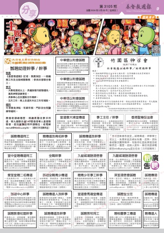 第 3105 期 主曆 2024 年 2 月 25 日(禮拜日) http://ChristianWeekly.net 分 9享 靈風漫步九龍城潮語浸信會幹事,中六畢業或以上,負責設計及多媒體事務,具相關工作經驗優先,應徵者具責任心及團隊精神,有事奉心志,需六日及輪班電郵[email protected]。招聘用 九龍城潮語浸信會誠聘傳道多名,神學畢業,具牧會經驗及團隊精神。主動熱誠委身牧養及教導。主責工作分別兒童事工、青少年事工、男士事工。電郵[email protected]。招聘用 全職幹事電腦文書一般辦公室事務,協助教會行政及推展事工。中學畢業具事奉心志,五天工作須週六上班。履歷寄長沙灣順寧道439號順寧居3樓執事會收,信生會信基堂招聘用 聘傳道人旺角區青少年及年輕家庭事工履歷寄[email protected]香港基督徒聚會中心只招聘用誠聘傳道及幹事傳道:神學畢業,主責牧養成人、婦女及兒童。幹事:中學畢業以上,行政文書財務支援各部,電腦運作。周六日上班。履歷電郵至[email protected]上環浸信會招聘用「香港宣教會恩盈堂」誠聘傳道,神學學士或以上,負責家庭及婦女牧養,成熟、具牧會經驗及團隊精神,有服侍社區拓展福音經驗更佳。履歷、諮詢人資料、蒙召見證請電郵至[email protected]堂主任收(只作招聘用)誠聘傳道負責兒童、婦女、少年牧養教導。請繕履歷[email protected]深井靈光堂人事小組招聘用誠聘傳道牧養青少年、職青及男士,履歷寄[email protected]宣道會將軍澳堂招聘用中華便以利會誠聘香港仔堂聘傳道應屆神學畢業均可幹事中學畢業電腦文書多媒體製作會計經驗週六日當值履歷[email protected]或寄九龍油麻地砵蘭街90號地下人事部招聘用中華便以利會誠聘筲箕灣堂聘傳道神學畢業負責小型教會牧養。福音幹事主力福音事工兼行政文書事務。履歷蒙召見證寄[email protected]或油麻地砵蘭街90號人事部收招聘用中華便以利會誠聘長洲堂招聘半職幹事中學畢業熟電腦文書有事奉心志能獨立處理教會行政事務週六日上班履歷[email protected]或九龍油麻地砵蘭街90號地下人事部收招聘用聘傳道及兩名幹事傳道需神學畢業,協助兒童及家長事工。行政幹事需大專畢業,負責策劃統籌事工。幹事需中學畢業負責文書行政。繕履歷[email protected]宣道會筲箕灣堂招聘用誠聘傳道同工荃灣區教會。神學畢業經驗不拘,熱誠主動具團隊精神,有負擔教導及傳福音。履歷電郵[email protected]或寄荃灣享和街94號一樓樂道會荃灣堂。(只作招聘用) 愛荃堂聘二名傳道一名負責青少年、一名負責成人或長者,配合教會整體事工發展 、神學學士或以上,繕寫牧養負擔、得救及蒙召見證,履歷及兩位諮詢人,電郵 [email protected]招聘用深荃浸信會誠聘牧師/堂主任/傳道人,負責帶領教會、青少年事工、傳福音及社區關懷。須神學畢業、主動積極、重視團隊精神。履歷電郵至[email protected],招聘用。聘青少年事工幹事專責協助教會發展青少年事工,大專及曾受青少年事工神學訓練優先,主動熱誠,有領導能力。請繕履歷電郵至[email protected]元朗基信會基立堂收(只招聘用) 宣道會大埔堂傳道神學畢業,負責少青同工,對門訓等事工有負擔,重團隊協作,善溝通,熱誠主動成熟,具外展佈道優先。履歷至[email protected]趙先生。招聘用 事工主任/幹事大專畢業或以上。負責教會崇拜及聚會策劃,影音支援,管理教會影音器材及資產,帶領影音事工團隊,熟悉電腦操作,履歷至[email protected],宣道會大埔堂招聘用 聘校園事工傳道國際小學CAPCL校園福音事工;神學畢業重團隊,牧養教導傳福音恩賜,通中英文,英語流利。履歷蒙召見證九龍城富寧街二號宣中堂周生[email protected]招聘用 宣中堂聘傳道同工負責青少年/長者事工,經驗喜接觸青少年/長者。神學畢業重團隊,講道牧養傳福音恩賜。履歷蒙召得救見證九龍城富寧街二號宣中堂周生[email protected]招聘用 誠聘全職青少傳道神學畢業,熱誠委身,擅教導關顧,重團隊協作及外展佈道,具牧養經驗優先,請電郵履歷附得救及蒙召見證至[email protected]播道會福泉堂王牧師(招聘用) 職責《基督教週報》記者,負責採訪、一般編務工作及出版相關事務 ;參與本會聯合事工。要求.大專程度或以上,具編採報刊經驗優先, 兼具神學訓練更佳。.具事奉心志及團隊合作精神。.五天工作;晚上及週末外出工作有補假。福利可享膳食津貼、有薪年假、門診及住院醫療等福利。 應徵者請繕履歷、得救見證及要求待遇,寄九龍聯合道140號香港華人基督教聯會,信封面請註明申請職位;或電郵[email protected]。(資料只作招聘用途)誠聘助理幹事/幹事誠聘教會社區幹事具事奉心志、成熟勤奮,重視團隊、熟電腦操作懂網頁或剪片更佳,獨立處理文書。負責社關服務需週六日工作。請寄[email protected]新生命浸信會招聘用 宣道會馬灣堂傳道神學畢業,委身小型堂會,主動熱誠,牧養關愛成人,青少年及婦女事工,請繕履歷至新界馬灣體育路一號執事會主席收,資料只供招聘用途。誠聘堂主任本堂誠聘堂主任。需神學畢業,具牧會經驗。履歷請電郵[email protected],興田浸信會聘牧委員會主席收。資料只供招聘用。誠聘中心幹事向家庭傳福音策劃推展活動帶小組中學畢業主動成熟並熟電腦操作繕履歷附得救見証教牧推薦信薪酬要求電郵[email protected]白田浸信會愛鄰中心梅生收只招聘用誠聘傳道人及幹事路德會恩光堂誠聘1傳道人,神學畢業具牧會經驗更佳,主責成人