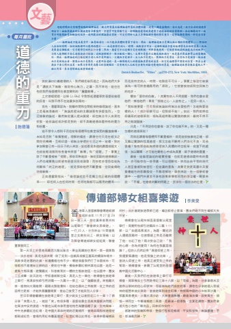 ·文藝道德的重力對於滿口仁義道德的人,我們總是敬而遠之。因為他們大多是「講就天下無敵,做則有心無力」之輩。而不幸地,這往往包括我們每個禮拜在教堂聽到的「屬靈教導」。上次曾經提過,以祿 (J. Ellul) 令我想起潘霍華對基督徒倫理的反省,叫我不得不在這裏多說兩句。首先,潘霍華認為,脫離時間和空間框架的倫理論述,基本上是毫無意義的,「無論其提出的主觀誠意有多麼強烈」。空泛抽象的論述,雖然無從讓人提出質疑,卻也無法令人由衷地折服。這些論述或許都是對的,卻不具備道德命題特有的重力和份量。這不禁令人想到千百信徒每個禮拜在教堂領受的屬靈教導。未知是否對「唯獨聖經」理解的偏差,講壇往往只是在經文之間兜兜轉轉,互相印證,卻無法穿透於生活之中。這樣,對於參加聚會已有一段日子的人來說,當他看見本週的講題或經文,也就能輕易猜到牧者會有甚麼「教導」和「提醒」了。事實上除了不斷重複被「提醒」那些耳熟能詳、無從反駁的道德教訓,人們也確實難以期望有甚麼洞見或啟發;而牧者亦埋怨信徒為何厭煩「純正的道理」,就是那些他們不斷重複、空洞貧瘠的道德教條。正如潘霍華指出,「倫理論述並不是獨立地正確的命題體系—— 即任何人在任何時間、任何地點都可以應用的體系—— 而是與特定的人、時間、地點密不可分。」事實上每當它被衰減為一堆可供普遍應用的「原則」,它就會被削弱到空洞無力的地步。譬如「愛你的仇敵」!其實有些人不用提醒,我們也會去愛他們、憐惜他們;畢竟「惻隱之心,人皆有之」。但另一些人,「我知道要愛,可是我卻無論如何無法去愛他們!怎能夠愛這樣的人!?或許耶穌可以,但我卻不能!」如此,我們就將信仰最高的道德原則,視為高超得難以實踐的教訓,最終不得不將之拋諸腦後。只是,「不用說你也會做,說了你也做不來」的,又是一種怎樣的道德原則?而倘若講壇每個禮拜不斷重複的,就是這些抽象地正確、卻又難以實踐的恆真道理,那又怎能不聽得人們消化不良、耳朵發癢?惟有那些能夠將道理放入具體的時空框架,或當下的處境,加以闡釋,才可能在聽者心中成為真實、賦予道德的重量。最後,這倫理論述的確實授權,也就是道德命題特有的重力,亦可能存在一些爭議。可以理解地,崇尚自由平等的現代人甚至會感到被冒犯。但這裏的重點,其實是對更高層次及實質優越性的客觀服從。不難理解地,舉例來說,在一個學術會議中,一個門外漢並不享有跟專家學者同等的發言權。簡單來說,「平權」在道德判斷的問題上,並沒有一個合法的位置。施德藩每月眉批超越時間和沒有確實地點的倫理論述,缺乏所有真正倫理論述所需的具體依據。這是一種青春期的、自以為是,且不合法的道德原則宣言;無論其提出的主觀誠意有多麼強烈,亦儘管可能很難定義,卻明顯感覺得到其違背了道德論述的本質特徵。在這種情況下,通常不可能對抽象和概括的程序,或所提出的理論提出質疑,可是它們卻又並不具備倫理命題的特定重力。這些話都是對的,卻完全沒有分量。……倫理論述不能在真空中、抽象地進行,而只能在具體的背景下進行。因此,倫理論述並不是獨立地正確的命題體系—— 即任何人在任何時間、任何地點都可以應用的體系—— 而是與特定的人、時間、地點密不可分。這種限制並不意味倫理學失去任何意義,反而是因着這個緣故,它才獲得它的保證和分量;然而,每當它不以這種方式受到限制,可供普遍應用,它就會被削弱到無能為力的地步。沒有人能夠賦予自己道德論述的保證;這保證被賦予、被分配給一個人,主要不是基於主觀成就和德行,而是基於其在世界上的客觀地位。因此,倫理論述的授權是賦予老人而不是年輕人、父親而不是孩子、主人而不是僕人、教師而不是學生、法官而不是被告、統治者而不是被統治者、傳教士而不是教民。這裏所表達的,是一種對現代人的情感極其冒犯的差異,但它是倫理學中固有的本質,即在上者與在下者之間的差異。如果沒有對更高層次的客觀服從,沒有現代人已經完全喪失的接受優越性的勇氣,倫理論述就會消散在籠統之中,缺乏對象,其本質特徵也就會被破壞。Dietrich Bonhoeffer, “Ethics”, pp270~272, New York: MacMillan, 1955.香港華人基督教聯會傳道部婦女組於去年 11 月 27 至 29日一連三天,前往廣東省惠州和汕尾舉行「聯會婦女喜樂遊」,一行 35 人,分別來自 19 間會員堂之女教牧同工、婦女領袖;以及聯會傳道部婦女組組員、聯會董事暨同工。第一天早上於香港高鐵西九龍站集合,乘坐高鐵前往惠州。第一個景點──淡水老街,真是名副其實,除了見到一座頗具規模五層高的橋頭市場外,其餘多是老舊的店舖,街邊攤檔也有不少。導遊領着我們行了半個街市,可惜都找不着賣綠豆餅的店,便前往午膳。餐後參觀紅樹林濕地公園,這是一處集生態保護、遊覽觀光、科普教育於一體的生態旅遊區。在公園中,團友三五成羣,談天說地,呼吸着新鮮空氣,真是人生一樂也。晚禱會在旅遊車上舉行,馬漢欽牧師引用詩篇一一九篇十一節上,以「儲藏敬虔」來勉勵大家,植物向太陽敞開,藉陽光製造養料;信徒也應向上帝敞開,從上帝的話語得力更新,才能供應屬靈需要,當自己接受了才能與別人分享。翌日早禱會繼續在旅遊車上舉行,黃少娟女士以創世記二十一章 1-7 節