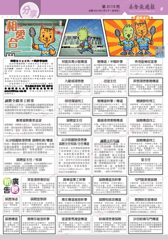 第 3115 期 主曆 2024 年 5 月 5 日(禮拜日) http://ChristianWeekly.net 分 9享聘傳道/半職幹事藍田靈糧堂聘請傳道2名,神學畢業,熱誠,兒童,家長,青少年團隊牧養。半職幹事,文書,行政。請繕履歷電郵[email protected]只供招聘用 誠聘傳道同工筲箕灣福音堂;神學學士畢業,經驗不拘,負責牧養:兒童、婦女或青少年優先,重團體合作,按恩賜配搭。履歷、見證寄:[email protected]署理堂主任收。招聘用靈風漫步聘課餘託管導師教導小學生課後功課輔導具教學經驗有愛心領兒童認識主耶穌。週一至五部份時間工作。履歷電郵青山浸信會[email protected](申請課餘託管導師職位)招聘用誠聘宣教師負責兒童及婦女牧養,神學學士或以上,具團隊精神。繕歷[email protected]或郵寄到屯門井財街廿九號二樓中華基督教會屯門堂關牧師收(資料只供招聘用)嘉盛浸信會聘傳道半職:能獨立牧養幼兒及家長事工。全職:除以上外,帶領教會發展,具講道及牧養恩賜。神學畢業,喜與人接觸。有意繕履歷[email protected]堂主任招聘用香港宣教會恩盈堂誠聘傳道,神學學士或以上,負責家庭及婦女牧養,成熟、具牧會經驗及團隊精神,有服侍社區拓展福音經驗更佳。履歷、諮詢人資料、蒙召見證請電郵至[email protected]堂主任收(只作招聘用)沙田粉嶺屯門傳道神學畢業三年牧會經驗主動成熟良好品格具團隊合作精神牧養關顧教導及推動教會事工。電郵覆歷蒙召見證兩名諮詢人至[email protected]真理浸信會招聘用堂主任中華基督教會海南堂聘堂主任(牧師或宣教師),七年或以上牧會經驗。牧養教導、堂校合作、領導策劃。履歷電郵至[email protected](資料只供招聘用)聘請教牧同工神學畢業,有牧會經驗,主動熱誠,委身牧養及教導。履歷,諮詢人資料,蒙召見證,電郵[email protected]至聘牧小組。東方基督教會旭光堂聘請用。誠聘傳道同工荃灣區教會。神學畢業,經驗不拘,熱誠主動,具團隊精神。有負擔教導及傳福音。履歷電郵[email protected]或寄荃灣享和街94號一樓樂道會荃灣堂。(招聘用)聘堂主任牧會5年或以上,有心志服侍基層家庭及青少年。履歷請電郵至[email protected]基督教中華宣道會長沙灣福盛堂人事組。只招聘用。九龍城浸信會差會助理幹事,大專程度,對差傳事工有熱誠,熟悉電腦文書及操作基本的影音器材,有意者請具函履歷表及要求待遇,電郵至[email protected]只作招聘用誠聘傳道及幹事傳道:神學畢業,主責牧養成人、婦女及兒童。幹事:中學畢業以上,行政文書財務支援各部電腦運作。須周六日上班。履歷電郵[email protected]上環浸信會招聘用誠聘堂主任領導教會發展,具講道及牧養恩賜,有十年以上牧會經驗,已按立作牧師為佳。履歷電郵至[email protected]金巴崙長老會道顯堂。招聘用興華堂事工幹事事工幹事,副學士學歷或以上,支援社區及教會活動行政,需週六、日上班。寄連城道6-10號地下或[email protected]張觀運牧師作招聘用聘傳道幹事/傳道主責兒童及協助青少年事工。需主動及團隊精神,大專或以上學歷,懂電腦操作,具兒童工作經驗者優先。請繕履歷耀東浸信會[email protected],只作招聘用。誠聘自修室全職/半職幹事助理協助管理本會轄下油塘自修室日常運作,揉合基督教信仰於自修室服務中,為區內青少年人提供服務,須輪班,每週工作全職 44 小時,半職22 小時,合約制,享年假、醫療及進修津貼等福利。認同本會宗旨及使命,中學畢業或以上教育程度,中英文良好。擅長與青少年建立關係、主動、具組織力及良好溝通技巧。有意者請於 5 月 17 日或前致函附履歷、期望薪酬及諮詢人資料,寄九龍亞皆老街 123 號神召會 禮 拜 堂 人 力 資 源 部 收 或 電 郵 到[email protected]。(申請人的個人資料只作招聘用途)香港聖樂促進會誠聘總幹事及培訓總監,有關職責、要求及詳情,請瀏覽本會網頁www.hkchurchmusic.org或查詢35902835,請繕履歷電郵至[email protected]招聘用誠聘全職事工幹事中五或以上具事奉心志熟電腦文書處理負責教會行政事務會計工作,按需要協助推動福音事工。履歷招聘用寄葵芳盛芳街葵芳商業中心 13 樓基立浸信會方牧師收或電郵至 [email protected]兒區及青少區傳道聘神學畢業且有意在駐中學小組教會建立及發展兒童及青少年群體的同工。有意請寄履歷至觀塘翠屏道102號新生命教育協會新生命福音堂招聘小組收(只供招聘用)深恩浸信會聘傳道主責牧養婦女、家長及兒童兼其他事工,神學畢業。委身牧養,具團隊精神。有意電郵履歷、得救和蒙召見證[email protected]只招聘用。誠聘傳道同工深水埗區一所有歷史的駐中學堂會,主責職青婦女及兒童,發展家庭事工及社區福音工作。神學學士或以上。履歷電郵[email protected]中華聖潔會麥傳道。只招聘用。深荃浸信會誠聘牧師/堂主任/傳道人,負責帶領教會、青少年事工、傳福音及社區關懷。須神學畢業、主動積極、重視團隊精神。履歷電郵至[email protected],招聘用。屯門區教會誠聘半職幹事,負責日常文書、熟悉電腦操作、會計入帳等職務。有意請電郵履歷至恩景堂[email protected]安排約見。「招聘用」尖沙咀國語浸信會誠聘主任牧師/主任傳道主任牧師/主任傳道需道學碩士或神學學士或以上學歷畢業,負責牧養及教導等,最少有七年認可之基督教機構工作,其中不少於四年牧會經驗。浸信會神學院畢業及浸信宗按牧優先,有意者電郵:[email protected],資料保密只作招聘用途