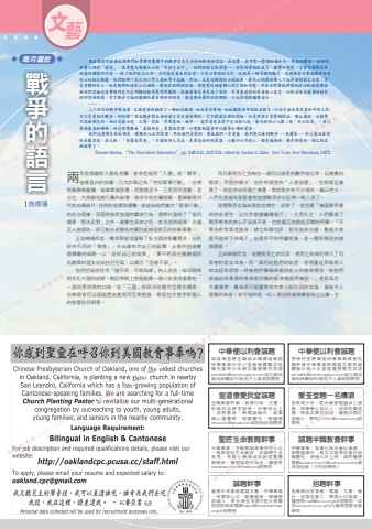 ·文藝戰爭的語言兩年前俄羅斯入侵烏克蘭,普京拒絕用「入侵」或「戰爭」這樣直白的詞彙,只允許稱之為「特別軍事行動」,彷彿就像修修圍欄、做做軍演那樣。而發展至今,已是明目張膽,全方位、大規模地進行轟炸破壞,務求令烏克蘭就範,重歸蘇俄時代的光輝歲月;任何的抵禦和還擊,都成為他們擴大「軍事行動」的合法理據。而面對核武強國的霸凌行為,國際社會除了「強烈譴責、堅決反對」之外,確實也莫奈之何。就是提供經濟、武器及人道援助,卻已無法改變烏克蘭到處頹垣敗瓦的悲慘事實。正如梅頓所言,戰爭製造者匯聚了各方面的智囊菁英,分析研究不同的「情境」,作出最有利自己的詮釋,必要時扭曲幾個關鍵的細節,以「說好自己的故事」;要不然再拉攏幾個同仇敵愾的盟友站站台打打氣,以顯示「吾道不孤」。他們拒絕與任何「道不同,不相為謀」的人交流,卻深興得到文化大國的諒解。猶記得網上曾經瘋傳一個小女孩背着書包,一副洞悉世情的口吻,從「三國」的政治形勢月旦俄烏關係,彷彿兩者可以超越歷史處境而互相對換,相信也令普京對國人的智慧刮目相看。而只要將死亡控制在一個可以接受的數字或比率,以務實的態度、管理的模式,容許有限度的「人道救援」,也就情至義盡了。你說你如何傷亡慘重,我說我亦有不少損失。曠日持久,人們也就連為甚麼會有這場戰爭亦忘記得一乾二淨了。這種戰爭言論刻意的含糊性,說穿了,就是要「掩蓋戰爭最終的非理性,以允許遊戲繼續進行」。久而久之,人們厭煩了戰爭帶來的良心不安與不便,也就廣泛地掀起反戰的呼聲:「不要告訴我誰是誰非,總之和解也好,割地賠款也罷,難道大家就不能停下來嗎?」這種和平的呼籲背後,是一種和稀泥的道德價值。正如梅頓所言,這種對死亡的玩弄,將死亡的腐朽帶入了玩弄者的語言本身。而「腐朽從他們的談話、思想蔓延到每個人的言語和思想。然後他們聲稱捍衛的政治和道德價值,被他們談論這些事情時愈來愈明顯的輕蔑態度所摧毀。」理直氣壯、大義凜然,最後卻只能讓那些大家心知肚明的言論,淪為令人唾棄的偽善;更可惜的是,叫人普遍對道德價值嗤之以鼻。施德藩每月眉批 現在讓我們看看政府部門和軍事智囊團中的戰爭官吏更浮誇和險惡的官話。在這裏,我們有一整個知識分子、學者的團隊,花時間琢磨不同的「情境」,並考慮大規模死亡的「可接受水平」。他們的語言和思想……具有科學的抗疫力、務實的態度,沒有受到對生命的感性關懷所污染 — 除了他們自己以外。這同樣是基本的自戀,只是以男性的方式,也就是一種管理的模式。透過煞有介事地操弄全球死亡的統計數據,他們證明了自己的現實主義和男子氣概。然而,正是這種對死亡的玩弄,將死亡的腐朽帶入了玩弄者的語言本身:不是身體的死亡,而是精神和道德上的滅絕。腐朽從他們的談話、思想蔓延到每個人的言語和思想。然後他們聲稱捍衛的政治和道德價值,被他們談論這些事情時愈來愈明顯的輕蔑態度所摧毀。技術策略本身成為了目的,引導着迷的玩弄者進入迷宮,以致策略本應達到的目的終究被破壞。官方戰爭言論的模糊性最首要的目的是:掩蓋戰爭最終的非理性,以允許遊戲繼續進行。……二十世紀的戰爭製造者,已經超前地創造了一種如此晦澀、如此易於背叛、如此模棱兩可的政治語言,以至它無法再充當和平的工具:它只是有利於戰爭。但何解?因為戰爭製造者的語言是自我封閉的。它不邀請合理的對話,而是用語言來壓制對話、阻止溝通,這樣雙方就無須交談,而以交換分歧、立場、村莊、空軍基地、城市 — 當然還有在其中生活的人民。每天的死亡人數(或「死亡比率」)被草率地審查和解碼。而這些總數由「真相部長」專業地管理,以便報紙讀者可以獲得正確的資訊。我們這邊總是節節領先。獲勝的人必然有理。然而我們是對的,因此我們一定會贏。我們再次看到戰爭 — 或廣告 — 的美麗而自戀的自圓其說。再次地,「有麝自然香」。不與任何人交流,是因為任何的異議,小圈子以外的人,都是錯誤的,都是邪惡的,都已經在地獄裏了。Thomas Merton, “The Nonviolent Alternative”, pp. 240-241, 243-244, edited by Gordon C. Zahn. New York: New Directions, 1972.中華便以利會誠聘筲箕灣堂聘全職或半職傳道應屆神學畢業均可小型教會關顧及牧養兒童青少年婦女履歷蒙召見證[email protected]或九龍油麻地砵蘭街90號地下人事部招聘用中華便以利會誠聘香港仔堂聘傳道神學畢業教會牧養幹事中學畢業熟電腦文書多媒體會計週六日當值履歷蒙召見證[email protected]或九龍油麻地砵蘭街90號地下人事部招聘用宣道會愛民堂誠聘全職教會幹事,負責行政、文書、財務及自修室管理。中學或以上,成熟委身,熟電腦操作,處事細心重團隊,經驗優先。繕履歷[email protected]高牧師收招聘用愛荃堂聘一名傳道負責青少年,配合教會整體事工發展、神學學士或以上,繕寫牧養負擔、得救及蒙召見證,履歷及兩位諮詢人,電郵[email protected]招聘用聖匠生命教育幹事大專畢業,主動熱誠具傳福音心志,發展堂校生命教育,認識學生及家長,有愛心懂溝通具創意重團隊精神。懂電腦操作為佳。履歷寄[email protected]招聘用誠聘半職教會幹事中學畢業,負責行政及會計事務;熟電腦操作,具文字處理或會計經驗優先;須週六日上班。請附履歷