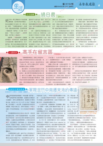 第 3116 期 主曆 2024 年 5 月 12 日(禮拜日) http://ChristianWeekly.net 生 6活近日到一間已開業四十年的西餐廳晚膳,招待我們的侍應說,他在這餐廳工作有四十年,即元老級。他問,「你猜我幾多歲?」這真不是一個容易答的問題,但說得年輕一點總是對。我們說,六十幾。他笑着說,「我已七十四歲了。」我們齊聲說,他不像七十幾歲呢!他解釋,「我曾經退休,但最難的問題是,每早飲完茶,就要計畫當日有甚麼活動。數個月還可以,但六個月後,我已沒有頭緒有甚麼活動了。所以,回來工作使我不用煩。最重要是可以過日晨。每日,我只工作三小時,晚上六至九。」在不同場合,我都有聽過退休者說,繼續工作是過日晨。他們的經驗提出對退休的一些重要考慮。第一,退休可以考慮漸進式方法多於一刀切方法。簡單來說,以逐步減少工作者的工作時數,邁向退休。例如,退休年齡是六十歲,首兩年減少 30% 工作時數、第三年減至50%、最後兩年再減至 30%。若退休年齡是六十五歲,漸進式就從六十歲開始。若嫌 5 年太長,可以將漸進減為 3 年。因工時減少,工資也會減少,打工仔是否歡迎這漸進式退休?或許,漸進式退休可以是一項選擇。此外,漸進式退休是否適用於所有工種?這會否變成另類剝削?第二,再聘請退休者是一個考慮。再獲聘請的退休者的工作量應比昔日的工作減少。例如,那位在餐廳的侍應就是如此。再聘請也是某程度的漸進式退休。當下勞動人口減少,很多僱主都願意再聘請退休者,他們不會被視為搶飯碗。此外,對於經濟不足的退休者,再聘請絕對是好安排。說到底,這為退休者可以過日晨。漸進式退休;還是再聘請,哪樣對退休者好?僱主和僱員有不同考慮。例如,僱主傾向再聘請多於漸進式退休,不但因為這易於管理,更因為再聘請沒有法律效力。至於僱員,他們會考慮再聘請的福利有別於漸進式退休的福利。說回來,退休者的過日晨活動可以幫忙照顧兒孫、參與教會的團契和活動或固定的橋牌會……等。我們還未結帳,這侍應走過來,說,「我放工。你們慢慢享受。」望着手錶,原來已經是九時十分。▲道友會建造「東涌禮拜堂」碑記刻有會徽 (2021年11月拍攝)中華帝國滿清皇朝晚期,中央政權一厥不振,在跌盪中無力挽回頹勢,全國統治日漸陷於分崩離析。孫中山領導的革命,經歷多次行事失敗之後,終於在 1911 年 10 月 10 日以「武昌起義」初次勝利。一時之間,各省區的地方政府先後響應;朝廷大勢已去,清帝只能退位。中華大地歷二千年的帝制終結,1912 年是為中華民國元年。那些響應革命的地方政府人物之中,既有真誠為國為民者;亦有只為順應時勢者,未必真實明白共和政制。由於各地方勢力都擁有各自的經濟實力,也擁有各自的軍事實力;於是形成互相競爭,也互相猜忌。他們各據一方,甚至無視中央政府;既誰也不服誰,亦誰也不信任誰,又誰也沒有能力足夠強大至可以統馭各方。結果民國初年中華國土形成軍閥割據的局面,社會仍是一團亂局。各軍閥都擁兵自重,無時不在力爭拓展自己的地盤,因而一直互相纏鬥。這其實是另類內戰,導致社會長年動盪不安。各路軍閥相互混鬥近二十年,直至在廣州成立的「國民政府」於 1928年底完成「北伐」,中華大地的軍政體系才大致統一,以至產生稍強的中央政府。在這段期間,不少教會人士選擇遷來香港;在這片英國佔治的細小地方,尚能相對安穩地工作。十九世紀中葉,美國教會的「聖潔運動」導致一波「奮興—復興」浪潮;隨後再引發起一股「五旬節運動」,並由此促發一場普世宣教熱潮。五旬節運動起初只是一條屬靈路線,尚未形成宗派教會;然而已經有不少受感染的主僕及信徒,自行自費地前往國外宣教。日後產生了五旬宗教會,這些宣教者才加入新教會,成為其差會的成員。在 1912 年,就是民國元年,四十二歲的美國單身女子,黎愛華(Mattie Swan Ledbetter) 自行來到激盪的中華大地。她在廣東地區傳道及開辦社會服務,包括學校及孤兒院等。兩年之後美國成立了神召會,後來黎愛華加入作其宣教士,因此得以參與神召會在中國的很多事工;其中包括籌建位於佛山市中心的「賚恩堂」。在 1928年,就是軍閥大致消散之年,黎愛華來到香港養病。然而她從未停歇傳道工作,竟成為神召會在香港傳道的第一人,並且建立了神召會在香港的第 一 間 教 會, 就是「 神 召 會 禮 拜堂」。挪威傳道會在 1903 年 差遣 艾 香 德(Karl Ludvig Reichelt)前來中國,領人歸主並教導神學。後來艾香德深深感受中華文化中融貫着佛教氣息,於是轉而專注向佛教僧侶見證天國福音。他成立「東亞基督教道友會」,又先後營建「景風山」及「天風山」,讓僧侶認識和體會基督信仰。可是不過幾年,艾香德的心血營造竟然毀於軍閥戰火。觀測治亂情勢之後,艾香德毅然遷來英國佔治的、細小的香港,從新重造「道友會」的事工;於 1930 年開始建立「道風山基督教叢林」。為了對應香港社會變遷,道友會一直在摸索方向,重整定位。在上世紀 50-60 年代,道友會也曾跟一般宗派看齊,積極開展鄉村佈道植堂。多年之後才將那些堂會移交信義會接辦。過日晨高手在留言區 軍閥混鬥中南遷來港的傳道「識睇梗要睇留言」是網上常見語句,提醒人們更精彩的意見往往在留言區,皆因出帖者不過是一家之言,留言區卻集合了各路人馬,高手往往藏在民間,他們的識見隨時比發帖人更專精。最近
