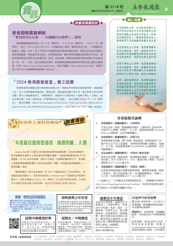 香港華人基督教聯會 主席:鍾健楷牧師 副主席:余英嶽牧師 總幹事:陸幸泉牧師 出版部部長:吳思源先生 出版部顧問:翁傳鏗牧師 李志剛牧師 張振華牧師 許朝英先生 胡明添牧師 出版部委員:植栢燊先生 吳業立先生 蘇永權先生 黃文江先生 許立中先生 鄺偉衡牧師 關銳煊先生 梁銘牧師 李鴻標牧師 吳渭濱先生 關鎮威牧師第 3118 期 主曆 2024 年 5 月 26 日(禮拜日) http://ChristianWeekly.net 資 8訊教會及機構短訊教會關懷貧窮網絡「實踐使命在社區──天國觀的社區轉化」課程教會關懷貧窮網絡將於 6 月 13 日(禮拜四)、6 月 20 日(禮拜四)、10 月 17 日(禮拜四),晚上 7 時 30 分至 9 時 30 分,於實體及線上舉辦「實踐使命在社區──天國觀的社區轉化」課程,其中 7 至 8 月將進行地區網絡協作服侍的實地考察。課程內容包括社區轉化服侍的教會觀、網絡協作實踐模式、資源發掘支援、實地考察與教關地區網絡伙伴交流,對象為願意開展社區服侍的堂會牧者、長執、信徒領袖。課程由基督教中國佈道會尖沙咀迦南堂「家 ‧ 南 ‧ 天地」堂主任關浩然牧師、教會關懷貧窮網絡總幹事馬秀娟博士擔任主題講員。詳情:https://www.hkcnp.org.hk/news,報名可瀏覽:https://shorturl.at/beglE,查詢可電 3689-9810 教會關懷貧窮網絡(伍小姐)。「2024 香港教會普查」義工招募香港教會更新運動正進行教會普查前期工程,將會向所有堂會派發調查問卷,現招募義工於 7 至8月期間協助問卷回收、電話訪問、資料處理及輸入等工序。義工對象為部分時間在職/等待工場的教牧同工、神學院學生、應屆中六文憑試考生/副學士學生/大專生、部分時間在職/待業/退休信徒(中學畢業或以上程度)。截止招募日期為 5 月 31 日(禮拜五),報名可瀏覽:https://docs.google.com/forms/d/e/1FAIpQLSe7wjVBpJJ6I8Up3tMJxcgZMmX1An2U-GBLZfWlR804JDl-Fw/viewform?pli=1,查詢可電2728-1700「教新」研究部。大有憐憫的主啊,在這關愛家傭主日,我們懇求祢除去各式各樣的種族主義,幫助家傭僱主在差異中仍能合一相愛,求祢賜我們各人一顆敬畏敬愛祢的心,幫助我們可以跨越種族藩籬互助互愛。大有慈愛的主上帝啊,我們要頌讚祢!在這充滿仇恨、爭鬥、殺戮的世代中,求祢藉你的愛激勵我們樂意彼此相愛,祢怎樣愛我們,使我們也能怎樣相愛。信實不變的主上帝啊,我們要稱頌祢!在這充滿虛偽、詭詐、欺騙的社會裏,求祢以祢信實不變的靈大大充滿我們,使我們可以對祢忠誠,彼此以誠相待。主啊,祢的恩典夠用,我們要感謝祢!在這貧者愈貧、富者愈富的處境當中,求祢施恩幫助祢的子民樂意與人分享,讓許多貧困的人也可以得着所需用的。奉主耶穌基督寶貴的聖名。誠心所願!李鴻標誠心所願香港靈糧堂誠聘1. 香港靈糧堂(銅鑼灣總堂)- 行政幹事中英文良好,熟悉一般電腦軟件操作,主動成熟,委身事奉,具兩年以上經驗,須週六、日上班。請繕履歷電郵 [email protected] 陳牧師,並註明應徵職位。2. 香港靈糧堂(銅鑼灣總堂)- 總務主任管理教會影音設備、樓宇保養、場地設施,督導堂務員工作,懂中英文打字及文書處理,具物業管理相關文憑優先,須週六、日上班。請繕履歷電郵 [email protected] 陳牧師,並註明應徵職位。3. 香港靈糧堂(銅鑼灣總堂)- 堂務員 ( 晚更清潔 )負責堂址清潔、場地佈置、物資搬運及雜務、定時巡樓。工時由晚上 9:30 至翌日早上 7:30,逢週日晚上例假。有意者請致電 2577 4216 羅主任。4. 香港靈糧堂(銅鑼灣總堂)- 堂務員(維修)負責教會場地設施定期檢查維修保養、處理緊急維修、跟進工程項目、執行其他指派工作,有相關經驗優先,須週六、日上班。有意者請致電 2577 4216 羅主任。(上述職位之「主要職責及詳細資歷要求」,請瀏覽本堂網頁 http://www.lingliangchurch.org/Facebook。申請者所提供的資料將予保密及 只作招聘有關職位用途。)宣道會景林堂招聘堂主任 神學畢業,五年或以上牧會經驗。帶領團隊和教會發展,有宣講與牧養恩賜。傳道同工 神學畢業,重視團隊配搭,具家庭及親子牧養經驗優先。請 將 履 歷、 得 救 及 蒙 召 見 證、牧 會 異 象 及 經 驗, 電 郵 至[email protected] 宣道會景林堂聘牧小組收。只作招聘用誠聘青少年傳道本會為中型教會,誠聘青少年 傳道同工,具神學學位,負責 青少年牧養、佈道、栽培。主動成熟,有事奉心志,配合團隊事奉。有意應徵者,請繕履歷,蒙召見證及兩位諮詢人資料,郵寄慈雲山毓華里 22 號嘉喜大廈 2 樓博愛潮語浸信會聘牧小組收,或電郵至[email protected],資料只供招聘用途。徵熱愛青少年牧者從零開始建立發展青少年牧養事工30多位青少年極需牧養徵有異象創意神學畢業青年牧者加入相關經驗優先履歷[email protected]土瓜灣浸信會主任牧師招聘用誠聘全/半職傳道配搭牧養會眾,帶領社區福音工作,神學學士,有志侍主。請繕寫牧養負擔、得救與蒙召見證,連同履歷電郵至[email protected]將軍澳基督徒會聘請小組收。招聘用誠聘半職傳道幹事負責青少年及家長福音事工,及處理堂務文書工作,能獨立工作,須六日上班。履歷請電郵[email protected]。(香港聖公會基督顯光堂招聘用)◆歡迎教會或機構將消息稿傳真或電郵至本報。◆出版前十個工作天截稿,隨稿請附聯絡資料。◆ 本報保留文字刪改及選刊權。限於篇幅,若不採用,恕不另行通知。◆請直接將文稿電郵至本報(email: [email protected])或傳真至本報,傳真號碼2338-2314。請