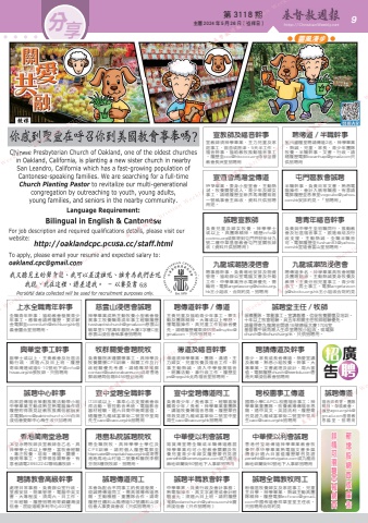 第 3118 期 主曆 2024 年 5 月 26 日(禮拜日) http://ChristianWeekly.net 分 9享聘傳道/半職幹事藍田靈糧堂聘請傳道2名,神學畢業,熱誠,兒童,家長,青少年團隊牧養。半職幹事,文書,行政。請繕履歷電郵[email protected]只供招聘用 靈風漫步誠聘宣教師負責兒童及婦女牧養,神學學士或以上,具團隊精神。繕歷[email protected]或郵寄到屯門井財街廿九號二樓中華基督教會屯門堂關牧師收(資料只供招聘用)聘傳道幹事/傳道主責兒童及協助青少年事工。需主動及團隊精神,大專或以上學歷,懂電腦操作,具兒童工作經驗者優先。請繕履歷耀東浸信會[email protected],只作招聘用。屯門區教會誠聘半職幹事,負責日常文書、熟悉電腦操作、會計入帳等職務。有意請電郵履歷至恩景堂[email protected]安排約見。「招聘用」誠聘傳道福音派教會,團隊精神,帶領教會。履歷[email protected]基督教恩臨堂,招聘用聘青年福音幹事負責與中學生至初職同行,推動教會及社區福音事工,跟進栽培及行政支援,主動熱誠,全職半職皆可。電郵履歷至[email protected]宣道會富山堂招聘用。九龍城潮語浸信會聘事務幹事,負責場地安排及物資管理,協助辦公室電腦文書及外勤工作,中學畢業持水電牌優先,需輪班。電郵[email protected]王小姐收,合則約見。招聘用宣教師及福音幹事宣教師須神學畢業,主力兒童及家庭事工,宿舍或房津,5天半工作。福音幹事,協助教牧推動福音事工。履歷至[email protected]中華基督教會長洲堂招聘用九龍城潮語浸信會聘傳道多名,神學畢業具牧會經驗及團隊精神。主動熱誠委身牧養及教導。主責分別兒童事工、青少年事工、男士事工。電郵[email protected]王小姐收合則約見宣道會馬灣堂傳道神學畢業,委身小型堂會,主動熱誠,牧養關愛成人,青少年及婦女事工,請繕履歷至新界馬灣體育路一號執事會主席收,資料只供招聘用途。誠聘堂主任/牧師領導團隊、策劃事工、宣講教導、信徒牧養關懷及培訓。十年以上牧會經驗,具五年相關主任牧師經驗優先。請履歷寄九龍灣宏開道16號德福大廈1706室基督教牛頭角潮人生命堂聘牧小組收,或電郵[email protected],只供招聘用。 聘請傳道及幹事青少、家長或長者傳道,熱愛宣講及教導、熟悉小組牧養。幹事,大專畢業,文書處理及設計,周六當值。電郵履歷[email protected]香港天樂浸信教會招聘用 聘校園事工傳道國際小學CAPCL校園福音事工;神學畢業重團隊,牧養教導傳福音恩賜,通中英文,英語流利。履歷蒙召見證九龍城富寧街二號宣中堂周生[email protected]招聘用宣中堂聘傳道同工負責青少年/長者事工,經驗喜接觸青少年/長者。神學畢業重團隊,講道牧養傳福音恩賜。履歷蒙召得救見證九龍城富寧街二號宣中堂周生[email protected]招聘用宣中堂聘全職幹事DSE或以上,事奉心志支援教會崇拜活動。管控影音系統,電腦影音器材經驗。週六日間中晚間當值;繕履歷九龍城富寧街二號宣中堂周先生[email protected]招聘用傳道及福音幹事傳道須神學畢業,團隊、溝通,主力婦女、兒童牧養及福音工作。幹事主動熱誠,須入中學發展福音,統籌活動,兼行政工作。履歷至[email protected]北角福音堂招聘用。牧群關愛會聘院牧負責醫院床邊關懷事工,具神學及牧養關懷CPE訓練,相關工作及行政經驗優先考慮。請繕履歷電郵[email protected]或寄香港郵政總局信箱8456號招聘用中華便以利會誠聘筲箕灣堂聘全職或半職傳道應屆神學畢業均可小型教會關顧及牧養兒童青少年婦女履歷蒙召見證[email protected]或九龍油麻地砵蘭街90號地下人事部招聘用中華便以利會誠聘香港仔堂聘傳道神學畢業教會牧養幹事中學畢業熟電腦文書多媒體會計週六日當值履歷蒙召見證[email protected]或九龍油麻地砵蘭街90號地下人事部招聘用誠聘半職教會幹事中學畢業,負責行政及會計事務;熟電腦操作,具文字處理或會計經驗優先;須週六日上班。請附履歷電郵[email protected]寶林浸信會(只作招聘用)慈雲山浸信會誠聘神學畢業成熟主動牧養小型教會發展事工牧養職青成年事工經驗履歷[email protected]慈雲山毓華里57號萬年戲院大廈3字樓C座慈雲山浸信會執事會招聘用誠聘全職教牧同工粉嶺區牧養婦女及家庭事工,兒童主日學,神學畢業,熱誠主動具團隊精神。履歷電郵[email protected]中國佈道會祥華堂堂主任收。只招聘用合則約見上水全職青年幹事全職青年幹事:協助教會發展青少年事工。應徵者請將履歷、要求薪金電郵至[email protected]信義會靈合堂招聘用。港島私院誠聘院牧聘全職院牧,具神學學士學位及CPE訓練,請附個人履歷電郵至[email protected]或寄香港跑馬地山村道二號養和醫院李樹芬院8樓院牧部,招聘用。香港閩南堂急聘本堂急聘牧師及宣教師各乙名,具神學學士或以上學歷,富牧會經驗,專注牧養、培育、傳道、關懷、發展等事工,並帶領各類聚會,有意者請電28932242聯絡蕭牧師。誠聘傳道同工本會為配合不同事工的長遠發展,現誠聘傳道同工。需具領導佈道恩賜,主動積極,重團隊合作。請寄履歷往鑽石山鳳德道52號鑽石山浸信會人事委員會收(只供招聘用)聘請教會高級幹事處理日常事務,負責辦公室行政,堂務安排,物業管理,電腦中英文書,大專程度,須周六,日工作,三年經驗。履歷招聘用寄銅鑼灣浸信會,屈臣道維多利中心403室興華堂事工幹事副學士或以上,主責教會及社區活動行政,須週六及日上班,履歷寄柴灣連城道6