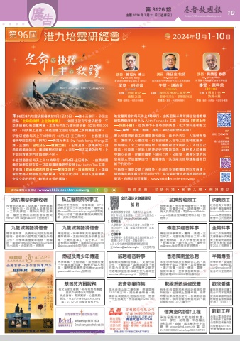 第 3126 期 主曆 2024 年 7 月 21 日(禮拜日) http://ChristianWeekly.net 廣 10告CMYMYYMYK96rev-ChrisWeek-adO.pdf 1 23/6/2024 8:43 PM私立醫院院牧事工聘助理主任院牧,神學畢業、CPE訓練及至少三年院牧經驗,履歷電郵[email protected]或寄跑馬地山村道二號養和醫院代轉院牧部,資料作聘請用途。新新工程承接水電油漆泥水各項裝修工程取價公道歡迎教會及主內肢體電90819077免費報價陳弟兄歡欣僱傭嚴格挑選菲印傭工適合不同家庭需要提供專業顧問服務經驗豐富服務真誠查詢21558177教會物業待售深水埗青山道二樓全層,建築面積2350平方呎,適合教會聚會、機構辦公或提供社區服務用途,售價一千五百萬元,有意請電25280186。信實室內設計工程承 造 各 類 裝 修 工 程 包 括 教 會、NGO、 學 校、 幼 稚 園、 中 西 醫 及牙科診所、商舖、寫字樓及住宅等網 頁 www.bhd.com.hk 電 話24130988WhatsApp94613739影視系統維修保養有多年教會影視系統設計維修及提升經驗,包括網上直播系統﹑崇拜音響效果改善及提升﹑各類影音器材維修﹑崇拜音響控制員培訓。歡迎聯絡98613721鄺先生消防團契招聘牧者牧養消防處員工及家屬,神學畢業,主動外向,向部隊人員傳福音,工作具彈性,需外出探訪及聚會。履歷至香港消防基督徒團契[email protected](招聘用)九龍城潮語浸信會聘事務幹事,負責場地安排及物資管理,協助辦公室電腦文書及外勤工作,中學畢業懂簡單維修,需輪班。電郵[email protected]王小姐收,合則約見。招聘用九龍城潮語浸信會傳道兩名,神學畢業具牧會經驗及團隊精神。主動熱誠委身牧養及教導。主責兒童事工、男士事工。申請者繕詳細履歷,電郵[email protected]合則約見。招聘用傳道及青少年傳道神學畢業,主動熱誠,按恩賜牧養,全職半職可議。教會於梨木樹邨。履歷電郵傳恩浸信會[email protected]招聘用誠聘福音幹事協助教牧推動福音事工,支援行政工作;主動熱誠,富團隊精神。需於周六日當值。請將履歷及期望待遇電郵至基督教頌主堂九龍本堂[email protected]。招聘用香港閩南堂急聘本堂急聘牧師及宣教師各乙名,具神學學士或以上學歷,富牧會經驗,專注牧養、培育、傳道、關懷、發展等事工,並帶領各類聚會,有意者請電28932242聯絡蕭牧師。半職傳道神學畢業,委身團隊合作,履歷[email protected]宣道會坪洲堂招聘用招聘同工旺角區青少年事工神學生傳道履歷寄[email protected]香港基督徒聚會中心只招聘用誠聘教牧同工神學畢業,有牧會經驗優先,主動熱誠,牧養青少年。請繕履歷、諮詢人及蒙召見證,電郵[email protected]信義會聖保羅堂聘牧小組(招聘用)全職幹事行政工作熟識電腦文書懂會計成熟盡責主動勤快請繕履歷新界粉嶺崇謙堂20A(招聘用)傳道及福音幹事傳道須神學畢業,團隊、溝通,主力婦女、兒童牧養及福音工作。幹事主動熱誠,須入中學發展福音,統籌活動,兼行政工作。履歷至[email protected]北角福音堂招聘用。 Weekly 基督教週報 Christian Weekly 基督教週報 Christian Weekly 基督教週報主曆 2024 年 7 月 21 日 Christian Weekly第 3126 期 (禮拜日)n Weekly 基督教週報 Christian Weekly 基督教週報 Christian Weekly 基督教週報 Christian Weekly 基督教週報 Christian W 基督教週報 Christian Weekly 神學畢業,主動熱誠,按恩賜牧養基督教週報@sbckc.org.hk合則約見。招聘用傳道及青少年傳道Christian Weekly 傳道兩名,神學畢業具牧會經驗及團隊精神。主動熱誠委身牧養及教導。主責兒童事工、男士事工。申請者繕詳細履歷,電郵[email protected]合則約見。招聘用基督教週報 Christian Weekly 誠聘教牧同工神學畢業,有牧會經驗優先,主動基督教週報 Christian Weekly 基基督教週報 Christian Weekly 基督教週報一千五百萬元,有意請電25280186 Christian Weekly 影視系統維修保養有多年教會影視系統設計維修及提升經驗,包括網上直播系統﹑崇拜音響效果改善及提升﹑各類影音器材維修﹑崇拜音響控制員培訓。歡基督教週報,專注牧養、培育、傳道、關懷、發展等事工,並帶領各類聚會,有意者請電28932242聯絡蕭牧師。隊合作,履歷[email protected]宣Christian We半職傳道神學畢業,委身團隊合作,履歷pcac.