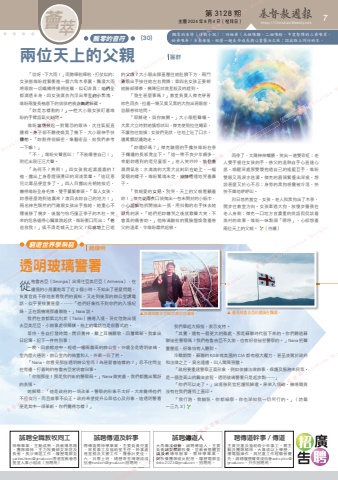 第 3128 期 主曆 2024 年 8 月 4 日(禮拜日) http://ChristianWeekly.net 薈 7萃飄零的音符 (30) 飄零的音符(連載小說):四姐弟(大姐唯願、二姐唯盼、中度智障的三弟唯岸、幼弟唯眷)自喪母後,經歷一趟生命成長與心靈醫治之旅;認出路上同行的主。「哎呀,下大雨!」雨勢嘩啦嘩啦,打仗似的;女孩偕唯盼趕緊衝進一個六角木亭裏。飄潑大雨將眼前一切編織得撲朔迷離,似幻非真;她們全都濕透半身,四女孩濕衣內浮出零星的小黑塊,唯盼兩隻長袖底下的排排疤痕亦無處躲藏。「妳是怎樣割的?」一位大小眼女孩盯着唯盼的手臂語氣尖刻問。唯盼當場鼓起一對驚恐的眼珠,沈住氣挺直腰桿,身子卻不聽使喚晃了幾下,大小眼伸手扶穩她。「妳割得很細密,像藝術品,給我們參考一下嘛!」「不,」唯盼尖聲直叫:「不能傷害自己!」附近出現汪汪犬聲。「為何不?爽咧!」四女孩掀起濕漉漉的 T裇,露出上身香煙頭燙印的深淺黑暈。「這玩意兒比毒品便宜多了。」四人目露凶光朝她挨近,嚇得唯盼全身毛悚,雙手纂緊拳頭。「華人女孩,妳憑甚麼跑到這裏來?滾回去妳自己的地方!」兩名神色頹然的鬥雞眼女孩出手推她,她重心不穩後移了幾步,後腦勺恰巧撞正亭子的木柱。突來的危急逼得心臟激跳起伏,唯盼衝口而出:「爸爸救我!」搞不清是喊天上的父?抑或地上已逝的父親?大小眼出膝蓋壓住她肚臍下方,兩鬥雞眼出手按住她左右肩膊;第四名女孩正要朝她臉部揮拳,幾陣狂吠救星般及時趕到。「發生甚麼事嗎?」教堂負責人傑克穿著棕色雨衣,拉着一條又濕又黑的大狗出現眼前,容顏慈祥地問。「耶穌佬,與你無關。」大小眼粗聲嚷。大黑犬立時對她憤怒吠叫,傑克使勁拉住繩索,不讓狗往前撲;女孩們見狀,往地上吐了口水,邊罵髒話邊跑走。「妳還好嗎?」傑克皺摺的手攙扶唯盼在亭子欄邊的長板凳坐下。「這一帶不良少年頗多,幸虧妳遇到的是兒童版。」老人笑吟吟,散發着濕潤氣息;水滴滴的大黑犬此刻趴在地上,一幅愛睏的樣子。唯盼驚魂未定,抽抽噎噎地哭着鼻子。「我親愛的女兒,別哭,天上的父親看顧着妳!」傑克從雨衣口袋掏出一包未開封的小紙巾,小心謹慎地拆開抽出一張,用抖動的右手抹去她眼角的淚。「她們把妳嚇哭之後就歡聲大笑,不會真的傷害妳。」他佈滿皺紋的寬臉盤煥發着慈父的溫柔,令唯盼肅然起敬。從格魯吉亞(Georgia)出境往亞美尼亞(Armenia),在邊境的小房裏乾等了近 3 個小時。不知出了甚麼問題,負責官員不停地查看我們的資料,又走到後面的辦公室講電話,似乎要核實甚麼,……「他們好像找不到你們的入境紀錄,正在跟機場那邊聯絡。」Nana 說。我們在首都第比利斯(Tbilisi)機場入境,現從陸路出境去亞美尼亞,小辦事處很簡樸,枱上的電話也是很舊式的。等待,各自打發時間,閉目養神,戴上耳機聽歌,回覆電郵。我拿出日記簿,記下一件特別事:一晚,回旅館途中,經過一幢兩層高的辦公室,外牆全是透明玻璃,室內燈火通明,辦公室內的佈置和人,外邊一目了然。「Nana,你看見那座透明辦公室嗎?為甚麼會這樣的?」忍不住問坐在旁邊、打着盹的格魯吉亞宣明會同事。「你指那座!那是我們新的警察局。」Nana 微笑着,我們都露出驚訝的表情。她解釋:「這是政府的一項改革。警察的形象不太好,大家覺得他們不但貪污,而且做事不公正。政府希望提升公眾信心及形象,這透明警署便是其中一項革新。你們覺得怎樣?」兩位天上的父親透明玻璃警署▲身處格魯吉亞與亞美尼亞邊境。麗群趙煥明 窮遊世界學無窮▲ 看見格魯吉亞的國旗在飄揚。聘傳道幹事/傳道主責兒童及協助青少年事工。需主動及團隊精神,大專或以上學歷,懂電腦操作,具兒童工作經驗者優先。請繕履歷耀東浸信會[email protected],只作招聘用。誠聘全職教牧同工神學畢業,主動成熟,具教導恩賜,團隊精神,主力牧養婦女家庭及長者。長沙灣區工作。履歷電郵至[email protected]香港宣教會恩基堂人事小組收(招聘用)雨停了,太陽伸伸懶腰,笑出一道雙彩虹;老人雙手握住女孩的手,慈父的溫熱自手心直達心底,喚醒深處那雙懷抱過自己的搖籃巨手,唯盼雙眼又再淚水迷濛。傑克的眉頭緊蹙出深痕,想說甚麼又於心不忍;身旁的黑狗感覺被冷落,怏怏不樂地咿咿叫。烈日忽然當空,女孩、老人和黑狗出了木亭,閒步往教堂方向。女孩牽過大狗,放慢步履偎在老人身側;傑克一口地方音濃重的英語侃侃談着漁村的故事,唯盼一味點頭「嗯哼」,心卻想着兩位天上的父親。 (待續)▲ 看見格魯吉亞的國旗在飄揚。我們舉起大拇指,表示支持。「其實,還有一個更大的難處,那是蘇聯時代留下來的。你們聽過蘇聯祕密警察嗎?我們格魯吉亞不久前,也有好些祕密警察的。」Nana 把聲量壓低,好像怕有人聽到。冷戰期間,蘇聯的 KGB 或美國的 CIA 都有極大權力,甚至凌駕於政府和法律之上,臭名遠播,叫人聞風喪膽。「政府要重建警察正面形象,例如依據法律辦事,保護及服務市民等,是一個登高山的艱辛旅程,透明玻璃警署只是起步點……」「你們可以走了。」出境移民官把護照歸還。原來入境時,機場職員沒有在我們護照上蓋印。「我行路,我躺臥,你都細察,你也深知我一切所行的。」(詩篇一三九 3)誠聘傳道及幹事聘傳道需神學畢業,主要負責兒童、家長事工及協助堂主任。幹事處理堂務及文書工作,懂會計更佳。六、日需上班,繕歷寄荃灣潮語浸信