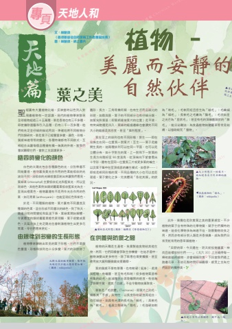 專頁 天地人和 聖經裏有大量植物比喻,反映當時以色列人對周邊植物有一定認識。現代的植物學家發現全球植物超過三十五萬種,單是香港也有三千多種,即使撇除園藝和引入品種,仍有二千一百多種。他們有充足並仔細的描述用詞,準確地將不同植物分門別類研究。單是葉子已經豐富多變,顏色、形態、質感味道等等的變化,各種特徵都有不同款式,互相組合出讓每個品種擁有獨一無異的外貌。當我們嘗試觀察它們,會對上主認識更多。隨四時變化的顏色白色的太陽光包含各種顏色的光,分別帶着不同能量值。植物裏負責光合作用的色素能吸收的光波段不同,沒吸收的光線就會反射出來讓我們看見。葉綠素 (chlorophyll) 主要吸收紅光和藍紫光,所以呈現綠色,其他色素例如類胡蘿蔔素吸收藍紫光為主,呈現出橙黃色。植物裏還有不是用作光合作用的色素,如花青素 (anthocyanin),也能呈現紅色和紫色。於是,不同種類的植物,葉片裏有不同濃度及種類的色素,混合形成不同層次的綠色。到了秋天,隨着日照時間變短和氣溫下降,葉綠素開始解體,令更穩定的類胡蘿蔔素橙色更明顯,葉子逐變成黃色。天氣冷加上充足陽光也會刺激植物生出更多花青素,令它們看來更紅。由規律到多變的生長形態植物學家歸納出常見的葉子形態,它們不單顏色豐富,形態和排列也十分多變。葉片的形狀除了圓形、長方、三角等幾何類,也有生活用品類比的形狀,如扇與盾。葉子的不同部分也有仔細分類,如葉尖和葉基(即葉柄連接葉片的位置)是平滑、有突出物還是凹入。葉緣的鋸齒邊緣也會講究不同大小的鋸齒及其密度,甚至「鋒利程度」。葉在莖上的排列也有不同形態:對生——即在枝條左右同一位置長一對葉片;互生——葉子是錯開生長的。這兩種排列可以在同一平面,也可以是立體分佈,如十字對生的葉,上一對和下一對葉的生長方向剛好呈 90 度直角,從頂端向下望會看出十字形。還有在莖同一位置長三片或更多葉的輪生,以及葉子集中在莖頂或底的叢生模式,如香茅……;即或是相同形態的葉,不同品種的大小也可以差距甚遠。葉子變化之多,完美體現「各從其類」的狀況。為「刺毛」;毛軟而短且密生為「絨毛」;毛纖細為「細毛」;長軟毛之毛叢為「鬚毛」;毛狀如星之光芒為「星狀毛」;甚至有毛的頂端圓頭狀的「腺毛」,能分泌醚油,為食蟲植物如豬籠草等常見結構,以協助殺死「獵物」。文:林慧琪 (香港基督徒自然保育工作者團契成員)圖:林慧琪、網上圖片在供養與防禦之間植物的天職是生產者,負責製造食物給其他生物。然而,它們同樣會爭取生存機會。在這矛盾中,植物演變出更多特性,除了眼看也需要觸摸,甚至使用放大鏡和顯微鏡支援觀察。葉的質感不單有厚薄,也有軟硬 ( 挺身 )、柔滑與粗糙,有蠟層,甚至有毛和刺!很多植物葉底有密集的幼毛,能減慢水分蒸發離開的速度。有些為了防禦性質,使其「口感」不佳令動物放棄取食。單單是「毛狀體」(Trichome),即葉片上的毛,順應其「手感」與特性,以長度和軟硬度再組合,也可細分。如具有光澤的長毛為「絹毛」;具軟毛為「軟毛」;毛直立剛硬為「剛毛」;毛強硬如刺此外,嗅覺也是欣賞葉之美的重要感官。不少植物的葉子含有特殊的化學物質,賦予它們獨特的味道。這些化學物多為味道不佳,防禦動物咬食之用,然而亦有部分對人類是芳香撲鼻,成為我們日常烹飪常用的香草類植物。「田野的草,今天還在,明天就投進爐裏,神 尚且這樣妝扮它們……」(太六 30)上主曉得每一棵衪創造的植物,亦會細細欣賞。下回當我們遇上路邊花草,不妨花點時間仔細觀察,感受上主為它們設計的獨特美。元朗大棠的楓香樹羣,每年秋天吸引不少遊人前來賞紅葉。( 圖源:wikipedia) ▲葉的各式形態 ( 圖源:翻攝自《香港植物志》)▲大小形態不一的葉片,就知道來自不同品種的植物。▲食蟲植物的「腺毛」。(圖源:wikipedia) ▲路邊小草可以很獨特。圖中為一點紅。▲香港伙伴為現上主創 Weekly 基督教週報 Christian Weekly 基督教週報 Christian Weekly 基督教週報 Christian Weeklyn Weekly 基督教週報 Christian Weekly 基督教週報 Christian Weekly 基督教週報 Christian Weekly 基督教週報 Christian W 基督教週報 Christian Weekly 基督教週報 Christian Weekly 基督教週報 Christian Weekly 基督教週報 Christian Weekly 基基督教週報 Christian Weekly 基督教週報 Christian Weekly 基督教週報 Christian We