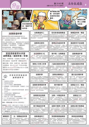 第 3143 期 主曆 2024年 11月 17日(禮拜日) http://ChristianWeekly.net 分 9享九龍城潮語浸信會傳道兩名,神學畢業具牧會經驗及團隊精神。主動熱誠委身牧養及教導。主責兒童事工、男士事工。申請者繕詳細履歷,電郵[email protected]合則約見。招聘用九龍城潮語浸信會聘事務幹事,負責場地安排及物資管理,協助辦公室電腦文書及外勤工作,中學畢業懂簡單維修,需輪班。電郵[email protected]王小姐收,合則約見。招聘用宣道浸信會深水埗堂誠聘傳道 / 福音幹事 / 幹事傳道:神學畢業,牧養青少年職青,拓展社區福音。福音幹事:推動福音事工,籌辦活動。幹事:負責行政、會計事務,支援聚會,周六日上班。可全或半職。履歷至 [email protected] 宣道浸信會深水埗堂只招聘用。誠聘教會幹事基督教基恩會荃灣堂現誠聘教會幹事乙名,申請人須具中五程度或以上學歷,熟悉電腦操作,並能夠獨立完成工作。申請人需具有事奉心志,職務包括日常行政及辦公室職務(各項文書處理、堂宇維修、各項聚會及活動安排、場地管理等),有團隊精神。申請者請將函歷、薪酬期望等電郵至[email protected](資料只作招聘用)聘傳道幹事/傳道主責兒童及協助青少年事工。需主動及團隊精神,大專或以上學歷,懂電腦操作,具兒童工作經驗者優先。請繕履歷耀東浸信會[email protected],只作招聘用。播道會和平堂誠聘全職幹事負責教會行政及支援聚會等工作。大專熟電腦文書。五天半/需六日及輪班工作。履歷、得救見證、期望薪酬及諮詢人資料電郵[email protected]招聘用誠聘傳道幹事負責堂校福傳及協助青年培育事工,神學畢業,具關顧、教導恩賜及2年或以上相關經驗優先。申請信連同履歷及要求待遇,電郵[email protected]聖公會靈風堂招聘用聘青少年事工幹事專責協助教會發展青少年事工,大專及曾受青少年事工或神學訓練優先,主動熱誠,有領導能力。請繕履歷電郵至[email protected]元朗基信會基立堂收(招聘用)聘半職/全職傳道神學畢業,流利普通話,普通話群體牧養,有牧會經驗者優先;成熟主動具團隊精神熟電腦操作,履歷電郵崇真會黃埔堂普通話分堂[email protected]招聘用迦道聘教牧2名1.青少年、職青及中學生校園福音事工。2. 成年、長者及社區福音和社關事工。神學畢業。應徵信電郵[email protected]只招聘用聘傳道及福音幹事傳道人:委身堂校事工,熱誠。須神學畢業。福音幹事:具神學背景優先,推動教會福音及青少事工,有意者把履歷電郵[email protected]富安浸信會禧年堂人事組招聘用誠聘兩名教牧具團隊精神,一位牧養和發展青少年事工。一位牧養家庭及婦女,與同工配搭開拓校園家長事工。履歷寄中華宣道會天耀堂[email protected]僅招聘用駐校教會誠聘傳道聘神學畢業且有心志在駐中學小組教會牧養兒童及姊妹群體的同工。有意者請寄履歷至觀塘翠屏道102號新生命教育協會新生命福音堂招聘小組收(只供招聘用)全職傳道同工成人牧養及主日學教導。神學畢業,有意請繕履歷附蒙召及得救見證至[email protected]基督教宣道會真道堂收。只供招聘用靈合堂招聘幹事全職或半職,協助教會推廣事工。需六、日上班。履歷表寄上水彩園村彩麗樓101-116地下,基督教香港信義會靈合堂收或電郵至[email protected]招聘用兼職會計中學畢業持LCC富工作經驗,會計事務系統輸入[email protected]堂主任收聘半職幹事服務教會及家庭中心,中學畢業,熟電腦文書。週三至日上午至少1節,共6節,每節4小時。請繕履歷電郵至[email protected]香港伯特利教會慈恩堂招聘用誠聘幹事中學或以上三年相關工作經驗處理教會大樓維修保養更新工程及相關行政基本電腦善溝通及團夥合作五天半工作放周一周日返上午有意電郵[email protected]招聘用誠聘全職傳道人旺角區教會誠聘全職傳道人,神學學士或以上,負責教會牧養,具牧養經驗者更佳。履歷、蒙召見証、諮詢人資料電郵[email protected]香港基督徒聚會中心招聘用全職/半職宣教師神學畢業,重視團隊配搭,主責年青婦女、家長及兒童的福音工作與牧養,具事奉經驗者。履歷電郵[email protected]中華基督教會梅窩堂堂主任收。(資料只作招聘用)誠聘堂主任/傳道聘堂主任,神學畢業,經驗不拘,委身小型堂會,熱誠傳福音門訓牧養青少年。履歷[email protected]佳音基督教會聘牧組招聘用或寄上水新豐路101-103號2樓誠聘堂主任屯門基督教惠荃堂聘堂主任,神學畢業,具牧會經驗,能獨立帶領堂會發展。請繕履歷、蒙召見證及牧養理念電郵至[email protected]只作招聘用。誠聘教堂堂務員處理堂務及借場,簡單維修工作,具水電維修經驗優先,六天工作,需週日上班,全職或兼職均可。履歷[email protected]或致電26999655聖公會靈風堂鄧小姐。招聘用誠聘教會事務幹事負責教會文書及入賬,一般庶務,須週六日當值,有意請將履歷電郵至[email protected]啟德平安福音堂,資料只作招聘用聘半職福音幹事負責與中學生至初職同行,推動教會及社區福音事工,跟進栽培及行政支援,主動熱誠,相關服侍經驗。電郵履歷至[email protected]宣道會富山堂招聘用。誠聘半職事工幹事中五或以上具事奉心志熟電腦文書,教會行政事務會計,協助推動福音事工。履歷寄葵芳盛芳街葵芳商業中心13樓基立浸信會方牧師收或電郵[email protected]招聘用誠聘全職半職傳道神學畢業有牧會經驗為佳,負責牧養關顧教導及推動教會事工,沙田、粉嶺或屯門區服侍。電郵履