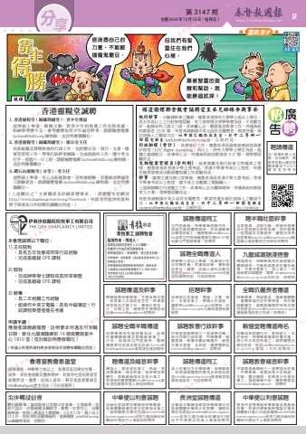 第 3147 期 主曆 2024年 12月 15日(禮拜日) http://ChristianWeekly.net 分 9享 靈風漫步全職伉儷長者傳道神學畢業,熱誠委身,擅教導關顧,重團隊協作及外展佈道,具牧養經驗優先,請電郵履歷附得救及蒙召見證至[email protected]播道會福泉堂王牧師(招聘用)九龍城潮語浸信會傳道兩名,神學畢業具牧會經驗及團隊精神。主動熱誠委身牧養及教導。主責兒童事工、男士事工。申請者繕詳細履歷,電郵 [email protected]合則約見,招聘用誠聘傳道及幹事聘傳道需神學畢業,主要負責兒童、家長事工及協助堂主任。幹事處理堂務及文書工作,懂會計更佳。六、日需上班,繕歷寄荃灣潮語浸信會[email protected]招聘用。招聘幹事負責辦公室事務、電腦、文書、會計、支援各事工,需週六日當值,履歷寄[email protected]招聘用。詳見www.kccc.org.hk九龍城基督徒會網頁誠聘全職半職傳道神學畢業有牧會經驗為佳,負責牧養關顧教導及推動教會事工,沙田、粉嶺或屯門區服侍。電郵履歷蒙召見證及兩名諮詢人[email protected]真理浸信會招聘用鞍盛堂聘傳道兩名初職或具經驗均可,愛神愛人,忠於使命。神學畢業專責牧養兒童、青少年及家庭等事工。請將履歷及蒙召見證,寄至[email protected]人事組(只作招聘用)誠聘教會福音幹事中華基督教閩南三一堂聘福音幹事,中學畢業,喜愛與青少年相處,主動,靈活變通,拓展青少年福音事工,協助教會行政。履歷電郵至[email protected],招聘用誠聘傳道同工成人牧養及主日學教導。神學畢業,有意請繕履歷附蒙召及得救見證至[email protected]基督教宣道會真道堂收。只供招聘用誠聘教會行政幹事中華基督教閩南三一堂誠聘全職/部分時間行政幹事,中學畢業,勤奮盡責,略懂音響設備運作,處理文書及堂務,北角區。履歷電郵至[email protected],招聘用誠聘全職傳道人神學學士或以上畢業,負責青少年及初職牧養,具講道訓練,懂普通話更佳。履歷、諮詢人資料及蒙召見證至[email protected]光道浸信會聘牧組,只供招聘用香港靈糧堂誠聘1. 香港靈糧堂 ( 銅鑼灣總堂 ) - 青少年傳道道學碩士畢業,積極主動,對青少年的牧養工作有使命感。如神學學歷不足,會考慮聘為青少年福音幹事。請繕履歷電郵[email protected] 陳牧師,並註明應徵職位。2. 香港靈糧堂 ( 銅鑼灣總堂 ) - 辦公室主任負責統籌及督導教會的行政工作,包括辦公室、項目、文書、檔案等管理工作。帶領行政幹事團隊,完成指派的工作。懂中英文打字,須週六、日上班。請繕履歷電郵 [email protected] 陳牧師,並註明應徵職位。3. 鑽石山靈糧堂 ( 分堂 ) - 堂主任道學碩士畢業,有心志拓展教會,具牧會經驗,有發展幼稚園事工經驗更佳。請繕履歷電郵 [email protected] 陳牧師,並註明應徵職位。( 上述職位之「主要職責及詳細資歷要求」,請瀏覽本堂網頁http://www.lingliangchurch.org/Facebook。申請者所提供的資料將予保密及只作招聘有關職位用途。)致:鄧先生(基督教週報)由:周惠儀日期:二0二四年十二月六日 煩請惠賜篇幅[89mm (H) x 108mm (W)],刊載下列招聘稿於二0二二年七月十日 貴報內,謝謝!循道衞理聯合教會誠聘愛主弟兄姊妹參與事奉執行幹事,分擔總幹事之職務。應徵者須持有大學學士或以上學位,具五年或以上之行政管理經驗,有工商管理及神學學歷為佳,中英數良好,能操流利之兩文三語、具奉獻心志、願意委身教會工作,待遇參政府薪級表 23-30 點。有意者請親繕中英文函件及履歷表、期望待遇、兩位諮詢人之聯絡方法,以申請之職位為主旨 , 於 十二月卅一日 前 電郵至 [email protected],合則約見。行政助理(會計),負責會計工作。應徵者須具倫敦商會試高級會計程度(LCC Higher Accounting)或以上、持有大學學士學位為佳,能獨立處理帳目,具事奉心志。待遇參照政府薪級表 9-17 點,視學歷經驗而定。文物檔案管理員(合約制),負責策劃及執行該會文物檔案之管理。應徵者須具香港中學文憑考試/香港中學會考或以上程度、有歷史檔案管理或活動展覽相關工作經驗為佳。幹事,處理文書及辦公室事務,應徵者須具香港中學文憑考試/香港中學會考或以上程度、擅中英文及數據之電腦輸入。上述兩個職位均須獨立工作,具事奉心志及團隊精神。待遇參政府薪級表 3-15 點,視學歷經驗而定。有意者請親繕中英文函件及履歷表、期望待遇及兩位諮詢人之聯絡方法 , 以申請之職位為主旨 , 於 十二月卅一日前 電郵至[email protected],合則約見。 (資料只作招聘用途)本會現誠聘以下職位 :1) 主任院牧 •具有五年牧會或同等行政經驗•完成基礎級 CPE 課程2) 院牧 •完成神學學士課程或具同等學歷⚫ •完成基礎級 CPE 課程3) 幹事 •具二年相關工作經驗•能操作中英文電腦;具有中級簿記 / 行 政課程學歷者優先考慮申請手續:應徵者請親繕履歷,註明要求待遇及可到職日期,寄往九龍灣臨樂街 19 號南豐商業中心 1810 室 ( 信封面註明應徵職位 )( 申請人所提供資料將多保密及作招聘有關職位用途 )聘傳道及福音幹事傳道人:委身堂校事工,熱誠。須神學畢業。福音幹事:具神學背景優先,推動教會福音及青少事工,有意者把履歷電郵[email protected]富安浸信會禧年堂人事組招聘用誠聘傳道同工屯門區教會。神學畢業經驗不拘,熱誠主動具團隊精神。有負擔教導及傳福音事工。履歷電郵[email protected]或寄屯門青海圍置樂花園85-87號地舖屯門基督教會。招聘用聘請傳道全/兼職牧養
