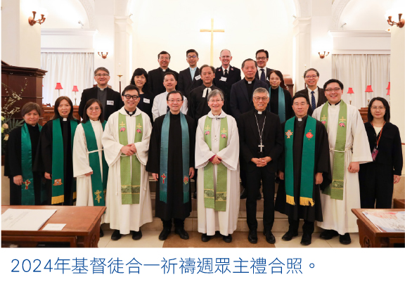 2024年基督徒合一祈禱週已於1月18至25日舉行,今年主題為「愛主至致、愛鄰如己」(路十27),其中「教牧及同工聯合聖餐崇拜」已於1月18日,假香港聖公會諸聖座堂舉行,當日有387位來自不同宗派、機構教牧同工出席,一同擘餅,展現合一。
