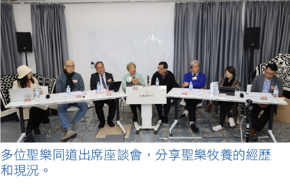座談會上論到當代聖樂牧養的現況,與會者提及疫情後不少教會合併了詩班及敬拜隊,加上弟兄姊妹或要一人身兼多個事奉職位,難免存在事奉張力及情緒。牧者要具備同理心,聆聽和明白事奉者的難處,並適時調動聚會時間,以致能更靈活地安排人手。此外,教會近年較多本土化詩歌創作,以致詩歌曲目大幅收窄,幾乎各教會都唱頌同一首詩歌,影響了信徒欣賞不同文化、色彩及藝術的能力,難以藉此豐富信仰經歷。至於「美」這個字的本源是上帝的榮耀,如世界是上帝所造,祂看為「好」便代表了美,基督徒要思考如何回歸「美」的根本──聖潔,回復上帝原先創造的榮美。