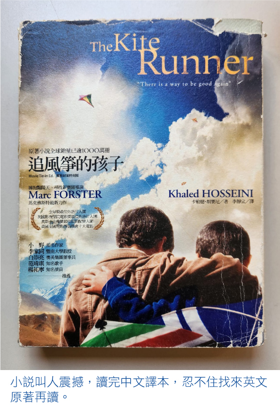 同事米雪(Michelle)把一本厚厚的書放到枱上,「你讀過這小說嗎?」小說名字是《追風箏的孩子》(The Kite Runner),作者是卡勒德•胡賽尼(Khaled Hosseini)。「沒有,沒有聽過,也沒有讀過,是好書嗎?」「你拿去讀讀,講阿富汗的,我想你會喜歡的!」同事們知道我除了工作,最喜歡閱讀,常介紹好書。