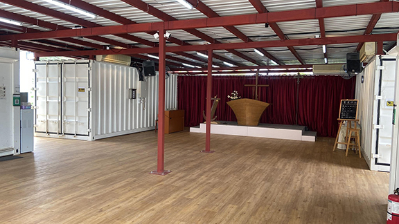 ▲教會以幾個貨櫃組合而成,作臨時聚會之用。