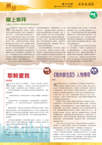 %u7b2c 3154 %u671f %u4e3b%u66c6 2025 %u5e74 2 %u6708 2 %u65e5%uff08%u79ae%u62dc%u65e5%uff09 http://ChristianWeekly.net %u8f3f 2%u60c5%u82e5%u60f3%u5fc3%u53e3%u5982%u4e00%u7684%u5c0d%u4eba%u8aaa%u300c%u8036%u7a4c%u611b%u4f60%u300d%uff0c%u5fc5%u9808%u6709%u4e00%u500b%u5927%u524d%u63d0%uff0c%u5c31%u662f%u81ea%u5df1%u89aa%u8eab%u7d93%u6b77%u904e%u300c%u8036%u7a4c%u611b%u6211%u300d%u3002%u63db%u53e5%u8a71%u8aaa%uff0c%u9664%u975e%u6211%u5011%u7531%u8877%u7684%u611f%u53d7%u5230%u300c%u8036%u7a4c%u611b%u6211%u300d%u7684%u751c%u871c%uff0c%u5426%u5247%u5f88%u96e3%u5c0d%u5225%u4eba%u8aaa%u51fa%u300c%u8036%u7a4c%u611b%u4f60%u300d%u9019%u56db%u500b%u5b57%u3002%u5152%u6642%u5538%u7684%u662f%u6559%u6703%u5b78%u6821%uff0c%u8a18%u5f97%u65e9%u6703%u6642%u8001%u5e2b%u5e38%u9818%u5531%u300a%u8036%u7a4c%u611b%u6211%u6b4c%u300b%uff0c%u7336%u8a18%u5f97%u958b%u982d%u5e7e%u53e5%uff1a%u300c%u8036%u7a4c%u611b%u6211%u6211%u77e5%u9053%uff0c%u56e0%u6709%u8056%u7d93%u544a%u8a34%u6211%uff0c%u5b69%u7ae5%u5728%u4e3b%u61f7%u88cf%u85cf%uff0c%u4ed6%u5011%u8edf%u5f31%u4e3b%u5f37%u58ef%u3002%u300d%u4e5f%u8a18%u5f97%u7576%u6642%u8001%u5e2b%u4e00%u5b9a%u53eb%u6211%u5011%u505a%u52d5%u4f5c%uff0c%u5c31%u662f%u7576%u5531%u5230%u526f%u6b4c%u300c%u4e3b%u8036%u7a4c%u611b%u6211%uff0c%u4e3b%u8036%u7a4c%u611b%u6211%u2026%u2026%u300d%u6642%uff0c%u6211%u5011%u5fc5%u7528%u624b%u6307%u6307%u5411%u81ea%u5df1%uff0c%u90a3%u662f%u591a%u9ebc%u5929%u771f%u7121%u90aa%u7684%u65e5%u5b50%u554a%u3002%u96a8%u7740%u5e74%u7d00%u6f38%u9577%uff0c%u5176%u5be6%u4e0d%u55ae%u6b62%u5c0d%u795e%u7684%u611b%uff0c%u5373%u4f7f%u5c0d%u89aa%u5982%u7236%u6bcd%u7684%u611b%uff0c%u6211%u5011%u7684%u53cd%u61c9%u4e5f%u6108%u4f86%u6108%u9072%u920d%u3002%u4e5f%u8a31%u662f%u53d7%u5230%u9e88%u4fd7%u7fd2%u6c23%u7684%u6c61%u67d3%uff0c%u6211%u5011%u5167%u5fc3%u90a3%u9762%u93e1%u5b50%u8b8a%u5f97%u6a21%u7cca%u4e0d%u6e05%uff0c%u5c0d%u4eba%u5c0d%u4e8b%u4e5f%u5e38%u6709%u6b6a%u66f2%u7684%u611f%u89ba%uff0c%u559c%u6a02%u548c%u5e73%u5b89%u7684%u5fc3%u4e5f%u4e0d%u5e38%u6709%u3002%u9019%u6642%u5019%u5373%u4f7f%u7e7c%u7e8c%u8fd4%u6559%u6703%uff0c%u751a%u81f3%u6709%u5404%u6a23%u7684%u4e8b%u5949%uff0c%u4f46%u5fc3%u4e2d%u5c0d%u8036%u7a4c%u7684%u611b%u591a%u611f%u5230%u964c%u751f%uff0c%u4f3c%u6709%u9084%u7121%u3002%u7576%u7136%u795e%u5f9e%u6c92%u6709%u96e2%u958b%u6211%u5011%uff0c%u662f%u6211%u5011%u9060%u96e2%u4e86%u886a%u800c%u5df2%u3002%u59cb%u7d42%u6709%u4e00%u65e5%uff0c%u5728%u5408%u9069%u7684%u6642%u5019%uff0c%u6211%u5011%u518d%u4e00%u6b21%u611f%u53d7%u5230%u8036%u7a4c%u7684%u611b%u3002%u5230%u90a3%u6642%u5019%uff0c%u5343%u5e06%u904e%u76e1%uff0c%u6211%u5011%u7e5e%u4e00%u500b%u5927%u5708%uff0c%u53c8%u56de%u5230%u6614%u65e5%u822c%u5690%u5230%u4e3b%u611b%u7684%u6ecb%u5473%u3002%u300c%u8036%u7a4c%u611b%u6211%u611b%u5230%u5e95%uff0c%u4e00%u76f4%u966a%u4f34%u4e0d%u5206%u96e2%uff0c%u5018%u6211%u4e00%u751f%u90fd%u611b%u7942%uff0c%u7942%u5c07%u9818%u6211%u56de%u7942%u5bb6%u3002%u300d%u5230%u6b64%u65e5%u5b50%uff0c%u56e0%u70ba%u6211%u5011%u5fc3%u4e2d%u518d%u4e00%u6b21%u6709%u8036%u7a4c%uff0c%u91cd%u65b0%u9ad4%u6703%u5230%u7942%u7684%u611b%uff0c%u6211%u5011%u5fc5%u6a02%u610f%u5c0d%u4eba%u8aaa%u53e5%u300c%u8036%u7a4c%u611b%u4f60%u300d%u3002%u6211%u5f88%u559c%u6b61%u72c4%u66f4%u65af%u7684%u5c0f%u8aaa%uff0c%u5176%u4e2d%u6700%u611b%u7684%u662f%u300a%u82e6%u6d77%u5b64%u96db%u300b%u548c%u300a%u584a%u8089%u9918%u751f%u8a18%u300b%uff0c%u5f8c%u8005%u6709%u5e7e%u500b%u4eba%u7269%u63cf%u5beb%u5f97%u5c24%u5176%u9bae%u660e%uff0c%u99ac%u5404%u6bd4%u751f%u6027%u6a02%u89c0%uff0c%u4ed6%u662f%u5c0f%u8aaa%u4e3b%u4eba%u7fc1%u5927%u885e%uff0e%u54e5%u4f2f%u98db%u7ae5%u5e74%u6642%u671f%u7684%u8a17%u7ba1%u4eba%u3002%u96d6%u7136%u5169%u4eba%u5e74%u7d00%u76f8%u5dee%u5f88%u9060%uff0c%u4f46%u99ac%u5404%u6bd4%u5c0d%u5927%u885e%u771f%u8aa0%u7684%u63a5%u5f85%uff0c%u8d0f%u5f97%u4e86%u4ed6%u7684%u53cb%u8abc%u3002%u7576%u4ed6%u56e0%u6b20%u50b5%u800c%u5750%u7262%u6642%uff0c%u5927%u885e%u7d93%u5e38%u53bb%u76e3%u7344%u63a2%u671b%u4ed6%uff0c%u9084%u628a%u50c5%u9918%u7684%u7269%u8cc7%u548c%u4ed6%u5206%u4eab%u3002%u99ac%u5404%u6bd4%u609f%u51fa%u4e86%u5c0d%u91d1%u9322%u7ba1%u7406%u7684%u7bb4%u8a00%uff1a%u300c%u5e74%u85aa 20 %u938a%uff0c%u652f%u51fa 19 %u938a 6%uff0c%u7d50%u679c%u7686%u5927%u6b61%u559c%u3002%u5e74%u85aa 20 %u938a%uff0c%u652f%u51fa 20 %u938a 6%uff0c%u7d42%u751f%u82e6%u60f1%u3002%u300d%u51fa%u7344%u6642%uff0c%u4ed6%u611f%u6fc0%u5927%u885e%u7684%u5fe0%u8aa0%uff0c%u4e26%u66ff%u5927%u885e%u60f3%u8fa6%u6cd5%u812b%u96e2%u56b4%u82db%u7684%u5f8c%u7236%u548c%u4ed6%u90a3%u9670%u6c88%u7684%u59d0%u59d0%u7684%u63a7%u5236%u3002%u5927%u885e%u807d%u5f9e%u4e86%u99ac%u5404%u6bd4%u7684%u5efa%u8b70%uff0c%u5f9e%u502b%u6566%u5f92%u6b65%u5230%u591a%u4f5b%u5e02%uff0c%u6295%u9760%u4ed6%u552f%u4e00%u7684%u89aa%u4eba%uff0c%u5373%u662f%u4ed6%u7684%u59d1%u6bcd%u3002%u5927%u885e%u5728%u59d1%u6bcd%u7684%u852d%u4e0b%u7d42%u65bc%u626d%u8f49%u4e86%u907a%u8179%u5b50%u7684%u5384%u904b%u3002%u5927%u885e%u5728%u574e%u7279%u4f2f%u4f86%u8b80%u66f8%u6642%uff0c%u5bc4%u5bbf%u5728%u5f8b%u5e2b%u7dad%u514b%u4f5b%u5bb6%u4e2d%uff0c%u7dad%u8207%u5973%u5152%u611b%u9e97%u7d72%u76f8%u4f9d%u70ba%u547d%uff0c%u4ed6%u6027%u683c%u8edf%u5f31%u800c%u4e14%u9157%u9152%uff0c%u7531%u65bc%u65e9%u5e74%u55aa%u5076%uff0c%u4e8b%u4e8b%u807d%u5f9e%u5225%u4eba%u5b89%u6392%u3002%u56e0%u6b64%u8b93%u4ed6%u7684%u5e2b%u723a%u6709%u6a5f%u53ef%u4e58%uff0c%u900f%u904e%u505a%u5047%u8cec%u6162%u6162%u541e%u4f75%u4ed6%u7684%u8ca1%u7522%u3002%u5e2b%u723a%u662f%u4e00%u500b%u9670%u6c88%u800c%u653b%u5fc3%u8a08%u7684%u4eba%uff0c%u5118%u7ba1%u8868%u9762%u4e0a%u975e%u5e38%u8b19%u865b%uff0c%u751a%u81f3%u81ea%u5351%uff0c%u5be6%u969b%u4e0a%u6709%u4e00%u5ec2%u60c5%u9858%u7684%u90aa%u60e1%u617e%u671b%uff0c%u76ee%u7684%u662f%u596a%u53d6%u611b%u9e97%u7d72%u70ba%u4f34%u4fb6%u3002%u7576%u5e2b%u723a%u5411%u7dad%u514b%u4f5b%u8868%u660e%u8981%u5a36%u5176%u611b%u5973%u6642%uff0c%u7dad%u75db%u82e6%u5f97%u5486%u54ee%uff0c%u4f46%u6700%u5f8c%u4ecd%u4e0d%u6562%u53cd%u6297%uff0c%u4f4e%u8072%u4e0b%u6c23%u5730%u63a5%u53d7%u4e8b%u5be6%u3