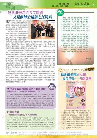 %u8cc7%u8a0a%u9999%u6e2f%u83ef%u4eba%u57fa%u7763%u6559%u806f%u6703 %u4e3b%u5e2d%uff1a%u937e%u5065%u6977%u7267%u5e2b%u3000%u526f%u4e3b%u5e2d%uff1a%u4f59%u82f1%u5dbd%u7267%u5e2b%u3000%u51fa%u7248%u90e8%u90e8%u9577%uff1a%u5433%u601d%u6e90%u5148%u751f%u3000%u51fa%u7248%u90e8%u9867%u554f%uff1a%u6881%u9298%u7267%u5e2b%u3000%u913a%u5049%u8861%u7267%u5e2b%u3000%u674e%u5fd7%u525b%u7267%u5e2b%u3000%u80e1%u660e%u6dfb%u7267%u5e2b%u3000%u690d%u6822%u71ca%u5148%u751f%u3000%u3000%u3000%u51fa%u7248%u90e8%u59d4%u54e1%uff1a%u674e%u70b3%u5149%u7267%u5e2b%u3000%u95dc%u92b3%u714a%u5148%u751f%u3000%u674e%u9d3b%u6a19%u7267%u5e2b%u3000%u5433%u6e2d%u6ff1%u5148%u751f%u3000%u9ec3%u6587%u6c5f%u5148%u751f%u3000%u8a31%u7acb%u4e2d%u5148%u751f%u3000%u7fc1%u50b3%u93d7%u7267%u5e2b%u3000%u5289%u570b%u5049%u7267%u5e2b%u3000%u5f35%u632f%u83ef%u7267%u5e2b%u3000%u8607%u6c38%u6b0a%u5148%u751f%u3000%u95dc%u93ae%u5a01%u7267%u5e2b%u7b2c 3154 %u671f %u4e3b%u66c6 2025 %u5e74 2 %u6708 2 %u65e5%uff08%u79ae%u62dc%u65e5%uff09 http://ChristianWeekly.net8%u4e0a%u5e1d%u554a%uff0c%u611f%u8b1d%u7962%u5f9e%u6b72%u9996%u5230%u5e74%u7d42%u90fd%u770b%u9867%u4fdd%u5b88%uff0c%u6c42%u7962%u5728%u9019%u65b0%u7684%u4e00%u5e74%uff0c%u8cdc%u6211%u5011%u4e00%u500b%u65b0%u7684%u958b%u59cb%uff0c%u6c42%u7962%u66f4%u65b0%u6211%u5011%uff0c%u9664%u53bb%u6211%u5011%u5404%u5f0f%u5404%u6a23%u7684%u7f6a%u884c%uff0c%u7d66%u6211%u5011%u4e00%u9846%u656c%u611b%u7962%u3001%u656c%u754f%u7962%u548c%u5c0b%u6c42%u7962%u7684%u5fc3%uff0c%u5c07%u6211%u5011%u5f9e%u7121%u77e5%u3001%u8ca7%u7aae%u548c%u75be%u75c5%u7576%u4e2d%u91cb%u653e%u51fa%u4f86%uff1b%u66f4%u6c42%u7962%u4fdd%u5b88%u6211%u5011%u53ef%u4ee5%u9748%u5de7%u50cf%u86c7%u3001%u99b4%u826f%u5982%u9d3f%uff0c%u8eab%u9ad4%u5fc3%u9748%u90fd%u9748%u6d3b%u5065%u58ef%uff0c%u5f97%u4ee5%u69ae%u8000%u7962%u7684%u8056%u540d%u3002%u4e0a%u5e1d%u554a%uff0c%u8d81%u6b64%u6bcf%u5e74 2 %u6708 2 %u65e5%u7684%u570b%u969b%u6fd5%u5730%u65e5%uff0c%u6c42%u7962%u5e6b%u52a9%u6211%u5011%u4e00%u540c%u97ff%u61c9%u570b%u969b%u6fd5%u5730%u4fdd%u80b2%u8da8%u52e2%uff0c%u4e26%u4e14%u53ef%u4ee5%u914d%u5408%u806f%u5408%u570b%u4eca%u5e74%u4e16%u754c%u6fd5%u5730%u65e5%u4e3b%u984c%uff0c%u8b93%u66f4%u591a%u4eba%u80fd%u4e86%u89e3%u6fd5%u5730%u6240%u5e36%u4f86%u7684%u591a%u6a23%u6027%u6548%u76ca%uff0c%u91cd%u8996%u5c0d%u6fd5%u5730%u7684%u4fdd%u8b77%uff0c%u5b88%u8b77%u73cd%u8cb4%u7684%u6fd5%u5730%u8cc7%u6e90%uff0c%u4fc3%u9032%u4eba%u985e%u7684%u9069%u5c45%u74b0%u5883%uff0c%u4ee5%u53ca%u8eab%u5fc3%u751f%u6d3b%u5065%u5eb7%uff0c%u5168%u6c11%u651c%u624b%u5b88%u8b77%u751f%u7269%u591a%u6a23%u6027%uff0c%u6e1b%u5c11%u8cc7%u6e90%u6d6a%u8cbb%uff0c%u53ef%u4ee5%u70ba%u4e0b%u4e00%u4ee3%u92ea%u5c31%u7da0%u8272%u3001%u6c38%u7e8c%u7684%u7f8e%u597d%u672a%u4f86%u3002%u5949%u9760%u6211%u5011%u6551%u4e3b%u8036%u7a4c%u57fa%u7763%u7684%u8056%u540d%u79b1%u544a%u3002%u963f%u5011%u3002%u674e%u9d3b%u6a19%u9999%u6e2f%u57fa%u7763%u6559%u670d%u52d9%u8655%u9006%u65c5%u540c%u884c%u8f14%u5c0e%u670d%u52d9%u653e%u9b06%u8212 Art %u2500%u2500%u9152%u7cbe%u58a8%u6c34%u85dd%u8853%u9ad4%u9a57%u5de5%u4f5c%u574a%u9999%u6e2f%u57fa%u7763%u6559%u670d%u52d9%u8655%u9006%u65c5%u540c%u884c%u8f14%u5c0e%u670d%u52d9%u5c07%u65bc 2 %u6708 11 %u65e5%u53ca 18 %u65e5%uff08%u79ae%u62dc%u4e8c%uff0c%u5171 2 %u7bc0%uff09%u665a%u4e0a 7 %u6642 30 %u5206%u81f3 9 %u6642 15 %u5206%uff0c%u65bc%u5c16%u6c99%u5634%u52a0%u9023%u5a01%u8001%u9053 33 %u865f%u8209%u8fa6%u300c%u653e%u9b06%u8212 Art %u2500%u2500%u9152%u7cbe%u58a8%u6c34%u85dd%u8853%u9ad4%u9a57%u5de5%u4f5c%u574a%u300d%u3002%u5167%u5bb9%uff1a%u6bcf%u5929%u751f%u6d3b%u548c%u5de5%u4f5c%u90fd%u8981%u597d%u597d%u7ba1%u7406%u81ea%u5df1%u7684%u6642%u9593%u548c%u60c5%u7dd2%uff0c%u4f46%u7e3d%u6703%u9047%u5230%u4e0d%u5982%u610f%u7684%u6642%u5019%uff0c%u624d%u767c%u73fe%u300c%u4e16%u754c%u539f%u4f86%u4e0d%u50cf%u4f60%u9810%u671f%u300d%u3002%u5de5%u4f5c%u574a%u900f%u904e%u9152%u7cbe%u58a8%u6c34%u85dd%u8853%u5275%u4f5c%uff0c%u8b93%u53c3%u52a0%u8005%u611f%u53d7%u300c%u53ef%u63a7%u300d%u8207%u300c%u4e0d%u53ef%u63a7%u300d%u7684%u540c%u6642%uff0c%u6b23%u8cde%u6d41%u52d5%u8272%u5f69%u7684%u8b8a%u5316%uff0c%u653e%u9b06%u6292%u58d3%uff0c%u85c9%u6b64%u5f97%u5230%u5fc3%u9748%u4e0a%u7684%u7642%u7652%u3002%u5c0e%u5e2b%u70ba%u9152%u7cbe%u58a8%u6c34%u85dd%u8853%u5c0e%u5e2b%u6881%u5f65%u8abc%u59d1%u5a18%uff0c%u8a73%u60c5%u53ca%u5831%u540d%u53ef%u700f%u89bd%uff1ahttps://www.hkcs.org/tc/services/nacs%uff0c%u67e5%u8a62%u53ef%u96fb 2731-6251%u3002%u7267%u8077%u795e%u5b78%u9662%u300c%u795e%u570b%u5152%u5973%u5011%u7684%u89ba%u9192%u300d%u65e5%u9593%u514d%u8cbb%u8ab2%u7a0b%u7267%u8077%u795e%u5b78%u9662%u5c07%u65bc 2 %u6708 13 %u65e5%u81f3 3 %u6708 6 %u65e5%uff08%u9022%u79ae%u62dc%u56db%uff09%u65e9%u4e0a 9 %u6642 30 %u5206%u81f3 11 %u6642%uff0c%u900f%u904e Zoom %u61c9%u7528%u7a0b%u5f0f%u8209%u8fa6%u300c%u795e%u570b%u5152%u5973%u5011%u7684%u89ba%u9192%u300d%u65e5%u9593%u514d%u8cbb%u8ab2%u7a0b%uff0c%u5171 4 %u5802%uff0c%u8b1b%u54e1%u70ba%u7267%u8077%u795e%u5b78%u9662%u69ae%u8b7d%u6821%u7267%u674e%u7a4e%u84ee%u6559%u58eb%u3002%u5c0d%u8c61%u70ba%u4e3b%u5167%u80a2%u9ad4%uff0c%u5e6b%u52a9%u5b78%u54e1%u91cd%u65b0%u8a8d%u8b58%u81ea%u5df1%u4f5c%u70ba%u300c%u795e%u570b%u5152%u5973%u300d%u7684%u8eab%u5206%uff0c%u559a%u9192%u4fe1%u5f92%u5c0d%u6551%u6069%u7684%u6df1%u523b%u73cd%u60dc%uff0c%u7a4d%u6975%u5c65%u884c%u795e%u570b%u5152%u5973%u7684%u8077%u4e8b%uff0c%u4ee5%u611b%u8207%u884c%u52d5%u56de%u61c9%u795e%u7684%u6069%u5178%u3002%u81ea%u7531%u5949%u737b%uff0c%u8a73%u60c5%u53ca%u5831%u540d%u53ef%u700f%u89bd%uff1a http://www.hkcmi.edu/te%uff0c%u67e5%u8a62%u53ef%u96fb 2652-9133%u3002%u6559%u6703%u53ca%u6a5f%u69cb%u77ed%u8a0a%u8aa0%u5fc3 %u64ad%u9053%u795e%u5b78%u9662%u9662%u9577%u4ea4%u8077%u79ae %u6240%u9858%u6587%u898b%u6b61%u535a%u58eb%u63a5%u7b2c%u4e03%u4efb%u9662%u9577%u64ad%u9053%u795e%u5b78%u9662%uff08%u4e0b%u7a31%uff1a%u64ad%u795e%uff09%u5df2%u65bc 1 %u670819%u65e5%u5047%u4e2d%u570b%u57fa%u7763%u6559%u64ad%u9053%u6703%u6e2f%u798f%u5802%uff0c%u8209%u884c%u9662%u9577%u4ea4%u8077%u79ae%u611f%u6069%u5d07%u62dc%u300
