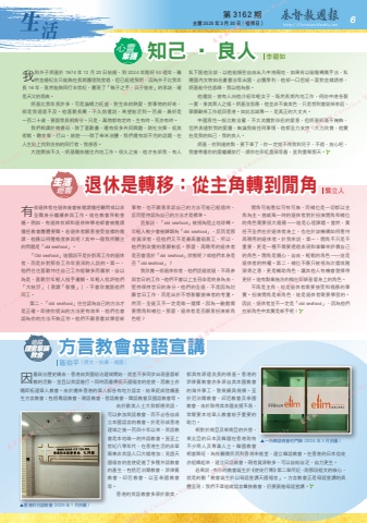 %u7b2c 3162 %u671f %u751f %u4e3b%u66c6 2025 %u5e74 3 %u6708 30 %u65e5%uff08%u79ae%u62dc%u65e5%uff09 http://ChristianWeekly.net %u6d3b 6%u6211%u548c%u5916%u5b50%u70b3%u57fa%u65bc 1974 %u5e74 12 %u6708 20 %u65e5%u7d50%u5a5a%uff0c%u5230 2024 %u5e74%u525b%u597d 50 %u9031%u5e74%uff0c%u96d6%u7136%u91d1%u5a5a%u7d00%u5ff5%u53ea%u80fd%u5920%u5728%u9577%u671f%u8b77%u7406%u9662%u5ea6%u904e%uff0c%u4f46%u5df2%u8d85%u904e%u9810%u671f%uff0c%u56e0%u70ba%u5916%u5b50%u6bd4%u6211%u5e74%u9577 16 %u5e74%uff0c%u7adf%u7136%u80fd%u5920%u540c%u884c%u534a%u4e16%u7d00%uff0c%u5be6%u73fe%u4e86%u300c%u57f7%u5b50%u4e4b%u624b%uff0c%u8207%u5b50%u5055%u8001%u300d%u7684%u627f%u8afe%uff0c%u78ba%u662f%u5929%u7236%u7684%u6069%u5178%u3002%u70b3%u57fa%u6bd4%u6211%u5e74%u9577%u8a31%u591a%uff0c%u53ef%u662f%u8ad6%u7cbe%u529b%u65fa%u76db%uff0c%u5c0d%u751f%u547d%u7684%u71b1%u611b%uff0c%u5c0d%u4e8b%u7269%u7684%u597d%u5947%uff0c%u537b%u662f%u6211%u9060%u9060%u4e0d%u53ca%u3002%u4ed6%u559c%u6b61%u9577%u58fd%uff0c%u4e0d%u4e45%u524d%u9084%u8aaa%uff0c%u5e0c%u671b%u80fd%u6d3b%u5230%u4e00%u767e%u6b72%uff0c%u6700%u597d%u662f%u4e00%u767e%u4e8c%u5341%u6b72%uff0c%u8981%u8ddf%u6211%u9577%u76f8%u5edd%u5b88%u3002%u53ea%u662f%uff0c%u842c%u7269%u90fd%u6709%u5b9a%u6642%uff0c%u751f%u6709%u6642%u3001%u6b7b%u4ea6%u6709%u6642%u3002%u6211%u5011%u76f8%u8b58%u65bc%u7e6a%u756b%u73ed%uff0c%u9664%u4e86%u559c%u6b61%u756b%uff0c%u9084%u6709%u5f88%u591a%u5171%u540c%u8208%u8da3%uff0c%u8df3%u793e%u4ea4%u821e%u3001%u901b%u7f8e%u8853%u9928%u3001%u807d%u97f3%u6a02%u3001%u884c%u5c71%u3001%u65c5%u904a%u2026%u2026%u9664%u4e86%u67f4%u7c73%u6cb9%u9e7d%uff0c%u6211%u5011%u9084%u6709%u8aaa%u4e0d%u5b8c%u7684%u8a71%u984c%uff0c%u5728%u4eba%u751f%u8def%u4e0a%u627e%u5230%u5408%u62cd%u7684%u540c%u884c%u8005%uff0c%u6211%u611f%u6069%u3002%u5927%u9678%u958b%u653e%u4e0d%u4e45%uff0c%u70b3%u57fa%u96a8%u62cd%u6a94%u5f80%u5167%u5730%u5de5%u4f5c%u3002%u5f88%u4e45%u4e4b%u5f8c%uff0c%u4ed6%u624d%u544a%u8a34%u6211%uff0c%u6709%u4eba%u79c1%u4e0b%u8ddf%u4ed6%u6d3d%u8ac7%uff0c%u4ee5%u4ed6%u80fd%u983b%u5bc6%u81ea%u7531%u51fa%u5165%u4e2d%u6e2f%u5169%u5730%uff0c%u5982%u679c%u80af%u4ee5%u5077%u9f8d%u8f49%u9cf3%u624b%u6cd5%uff0c%u79c1%u904b%u570b%u5167%u6587%u7269%u5982%u540d%u756b%u66f8%u6cd5%u7b49%u51fa%u570b%uff0c%u5fc5%u7372%u539a%u5229%uff0c%u4ed6%u537b%u4e00%u53e3%u62d2%u7d55%u3002%u9762%u5c0d%u91d1%u9322%u8a98%u60d1%uff0c%u70b3%u57fa%u80fd%u5b88%u4f4f%u5e95%u7dda%uff0c%u6211%u4ee5%u4ed6%u70ba%u50b2%u3002%u4ed6%u9084%u8aaa%uff0c%u66fe%u6709%u4eba%u5411%u4ed6%u4ecb%u7d39%u5e74%u8f15%u5973%u5b50%uff0c%u65e2%u7136%u9577%u671f%u5167%u5730%u5de5%u4f5c%uff0c%u4f55%u59a8%u4e2d%u6e2f%u5404%u5a36%u4e00%u59bb%uff0c%u4eab%u5176%u9f4a%u4eba%u4e4b%u798f%u3002%u70b3%u57fa%u6c92%u7b54%u61c9%uff0c%u4ed6%u4e26%u975e%u4e0d%u8caa%u7f8e%u8272%uff0c%u53ea%u662f%u60f3%u5230%u6703%u6bc0%u6389%u5bb6%u5ead%uff0c%u5be7%u9858%u8fad%u6389%u5de5%u4f5c%u8fd4%u56de%u9999%u6e2f%u3002%u5982%u6b64%u5fe0%u8aa0%u5c08%u4e00%uff0c%u662f%u771f%u6b63%u7684%u5927%u4e08%u592b%u3002%u4e2d%u570b%u7537%u6027%u4e00%u822c%u6bd4%u8f03%u542b%u84c4%uff0c%u4e0d%u592a%u6d41%u9732%u5c0d%u4f34%u4fb6%u7684%u611b%u610f%uff0c%u4f46%u70b3%u57fa%u537b%u6beb%u4e0d%u63a9%u98fe%uff0c%u5766%u7136%u8868%u9054%u5c0d%u6211%u7684%u611b%u8b77%uff0c%u7121%u8ad6%u6211%u505a%u4efb%u4f55%u4e8b%u60c5%uff0c%u4ed6%u90fd%u5168%u529b%u652f%u6301%uff0c%u5927%u529b%u6b23%u8cde%uff0c%u4ed6%u5be6%u5728%u662f%u6211%u7684%u77e5%u5df1%uff0c%u6211%u7684%u826f%u4eba%u3002%u70b3%u57fa%uff0c%u4f60%u5230%u9054%u7d42%u9ede%uff0c%u8981%u4e0b%u8eca%u4e86%uff0c%u4f60%u4e00%u5b9a%u6368%u4e0d%u5f97%u6211%u548c%u5152%u5b50%uff0c%u4e0d%u904e%uff0c%u653e%u5fc3%u5427%uff0c%u6211%u6703%u5e36%u7740%u4f60%u7684%u611b%u7e7c%u7e8c%u524d%u884c%uff0c%u8acb%u4f60%u5728%u5f69%u8679%u76e1%u982d%u7b49%u7740%uff0c%u76f4%u5230%u91cd%u805a%u90a3%u5929%u3002%u9000%u4f11%u662f%u8f49%u79fb%uff1a%u5f9e%u4e3b%u89d2%u8f49%u5230%u9592%u89d2 %u65b9%u8a00%u6559%u6703%u6bcd%u8a9e%u5ba3%u8b1b%u6709%u4e9b%u9000%u4f11%u8005%u5728%u9000%u4f11%u5f8c%u6703%u88ab%u9080%u8acb%u64d4%u4efb%u9867%u554f%u6216%u4ee5%u975e%u5168%u8077%u8eab%u5206%u7e7c%u7e8c%u53c3%u8207%u5de5%u4f5c%u3002%u9019%u5728%u6559%u6703%u754c%u8f03%u666e%u904d%u3002%u4f8b%u5982%uff0c%u6709%u9000%u4f11%u7267%u5e2b%u548c%u9000%u4f11%u795e%u5b78%u8001%u5e2b%u6703%u88ab%u9080%u8acb%u64d4%u4efb%u6559%u6703%u5718%u9ad4%u8981%u8077%u3002%u82e5%u9000%u4f11%u8005%u9858%u610f%u63a5%u53d7%u9019%u6a23%u7684%u9080%u8acb%uff0c%u4ed6%u61c9%u4ee5%u4f55%u7a2e%u614b%u5ea6%u53c3%u8207%u5462%uff1f%u5176%u4e2d%u4e00%u500b%u6211%u6240%u95dc%u6ce8%u7684%u554f%u984c%u662f%u300cold seafood%u300d%u3002%u300cOld seafood%u300d%u9019%u500b%u8a5e%u4e0d%u662f%u91dd%u5c0d%u518d%u5de5%u4f5c%u7684%u9000%u4f11%u8005%uff0c%u800c%u662f%u91dd%u5c0d%u90a3%u4e9b%u5de5%u4f5c%u5e74%u8cc7%u6df1%u7684%u4eba%u8aaa%u7684%u3002%u7b2c%u4e00%uff0c%u4ed6%u5011%u5f80%u5f80%u559c%u6b61%u6043%u4f4f%u81ea%u5df1%u5de5%u4f5c%u7d93%u9a57%u591a%u800c%u64fa%u6b3e%uff0c%u81ea%u4ee5%u70ba%u662f%uff0c%u559c%u6b61%u5c0d%u5e74%u8f15%u4eba%u6307%u624b%u756b%u8173%u3002%u5e74%u8f15%u4eba%u6279%u8a55%u4ed6%u5011%u300c%u5927%u679d%u91ce%u300d%uff08%u610f%u8b02%u300c%u50b2%u6162%u300d%uff09%uff0c%u4e0d%u6703%u6b23%u8cde%u8ddf%u4ed6%u5011%u540c%u5de5%u3002%u7b2c%u4e8c%uff0c%u300cold seafood%u300d%u5f80%u5f80%u8a8d%u70ba%u81ea%u5df1%u7684%u65b9%u6cd5%u624d%u662f%u6b63%u78ba%u3002%u5373%u4f7f%u4f60%u63d0%u51fa%u7684%u65b9%u6cd5%u66f4%u6709%u6548%u7387%uff0c%u4ed6%u5011%u4e5f%u6703%u8a8d%u70ba%u4f60%u7684%u65b9%u6cd5%u4e0d%u5920%u6b63%u5b97%u3002%u4ed6%u5011%u4e0d%u9858%u610f%u5617%u8a66%u5b78%u7fd2%u65b0%u4e8b%u7269%uff0c%u4e5f%u4e0d%u9858%u610f%u627f%u8a8d%u81ea%u5df1%u7684%u65b9%u6cd5%u53ef%u80fd%u5df2%u7d93%u904e%u6642%uff0c%u53cd%u800c%u5805%u6301%u8a8d%u70ba%u81ea%u5df1%u7684%u65b9%u6cd5%u624d%u662f%u6a19%u6e96%u3002%u76f4%u63a5%u8aaa%uff0c%u300cold seafood%u300d%u88ab%u8996%u70ba%u963b%u6b62%u5730%u7403%u8f49%u3002%u5e74%u8f15%u4eba%u8f03%u5c11%u6703%u88ab%u6b78%u985e%u70ba%u300cold seafood%u300d%uff0c%u53cd%u800c%u662f%u9
