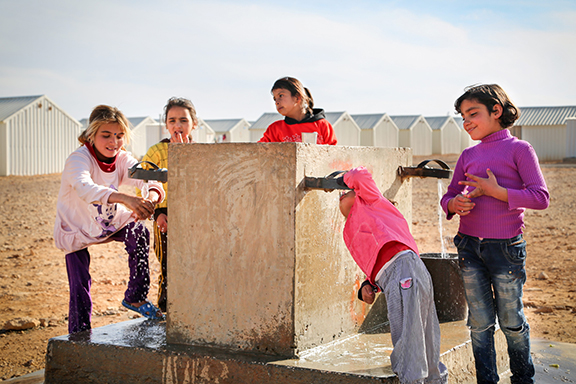 約旦Azraq難民營在沙漠中拔地而起,四圍只有沙、風、天空,沒有草、沒有樹、沒有河、沒有生命。宣明會跟其他救援機構伙同約旦政府及聯合國,在這荒野無人之地火速興建一個難民營,預算可容納50,000人。有機構建造道路;有機構建造鐵皮屋;宣明會負責興建公眾淋浴室和衛生間,以及供應清潔用水等。