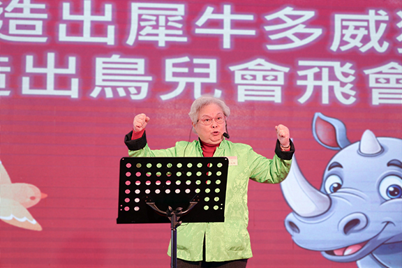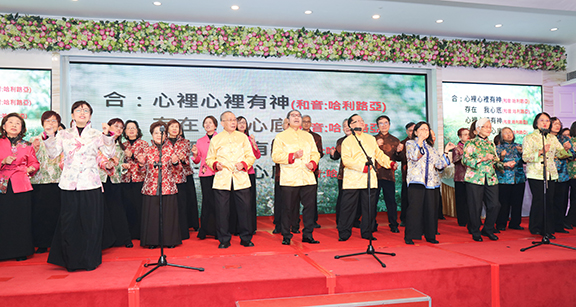 ▲嘉賓領唱〈交託主恩手〉,祝願會眾仰賴恩主,同得喜樂。