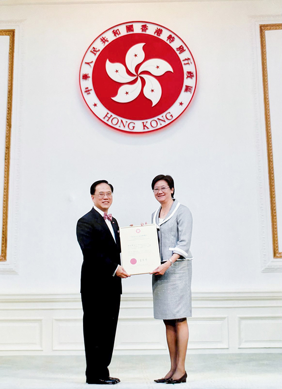 ▲2007年7月1日獲頒授香港特別行政區行政長官社區服務獎狀。