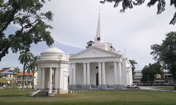 最早建設的喬治市,至今成為現代檳城的舊城區,是往昔最繁榮的行政和商業中心區。在舊日殖民政府機構集中的核心地帶,有一條小街,Lebuh Gereja;lebuh是路或巷,這就是檳城的「教堂路」。路的一端矗立「聖喬治堂」,是檳城最早的基督新教建置。