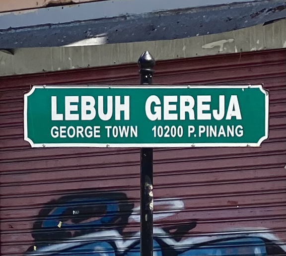 ▲聖喬治堂側旁「教堂路」;Lebuh 是路,Gereja是教堂(2025年1月攝)