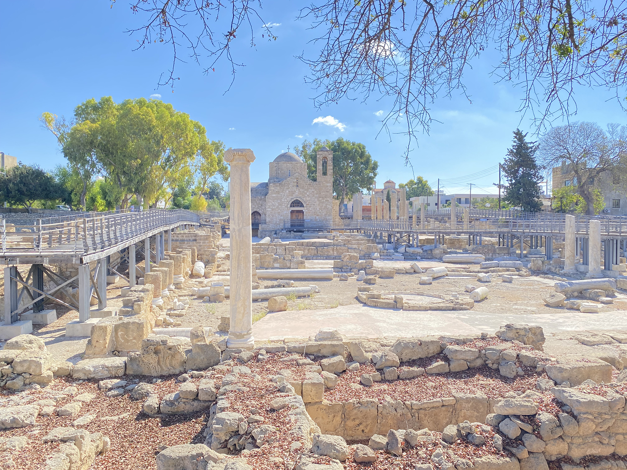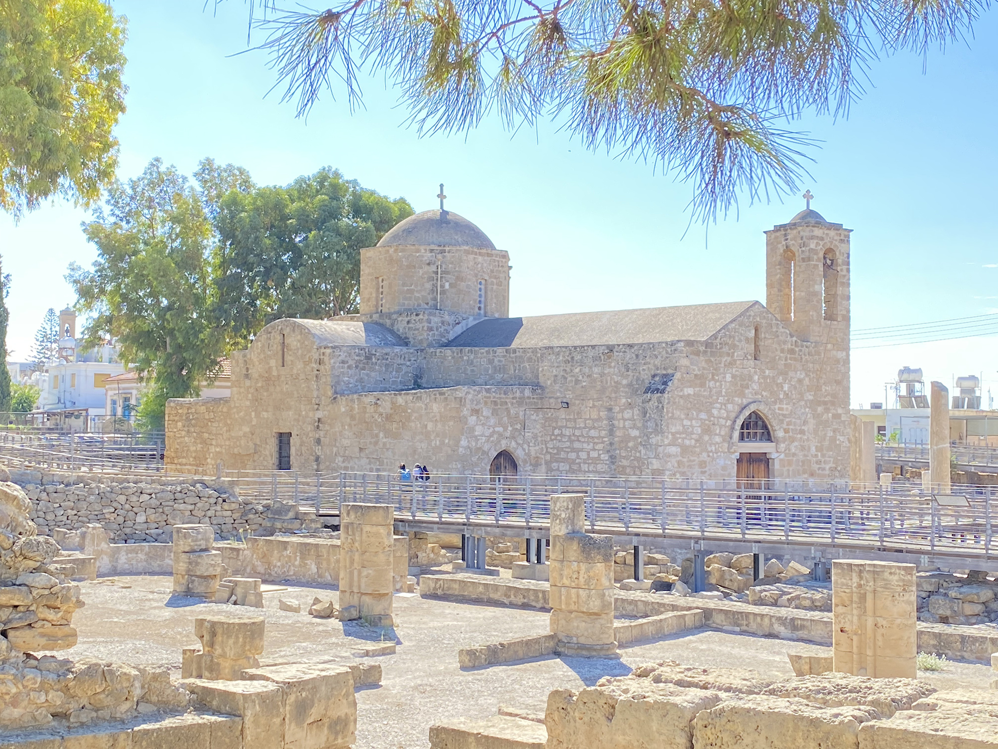 遊客要追看的除了是被指為曾經縛着使徒保羅的石柱外,還有在原址上建造的Church of Agia Kyriaki,此由大石所砌成的建築,建成約於公元1500年,教堂原址為一所建於約公元1100年的拜占庭式(希臘東正教)教堂,後幾經修改才變成今天的模樣,也改建成為給基督新教用。現時生活在這裏的人,也喜用此處作為行婚禮的地方。要說歷史,這座教堂是為紀念一位女聖人而命名,agia就是「女聖人」之意,Kyriaki就是這位年輕女士的名字,她自小就決意奉獻給教會而終身不婚,卻碰上銳意逼害基督徒的羅馬皇帝戴克里先(Diocletian 244-313),她為了忠於信仰而受盡酷刑,最後不惜犧牲性命,死時才二十一歲。