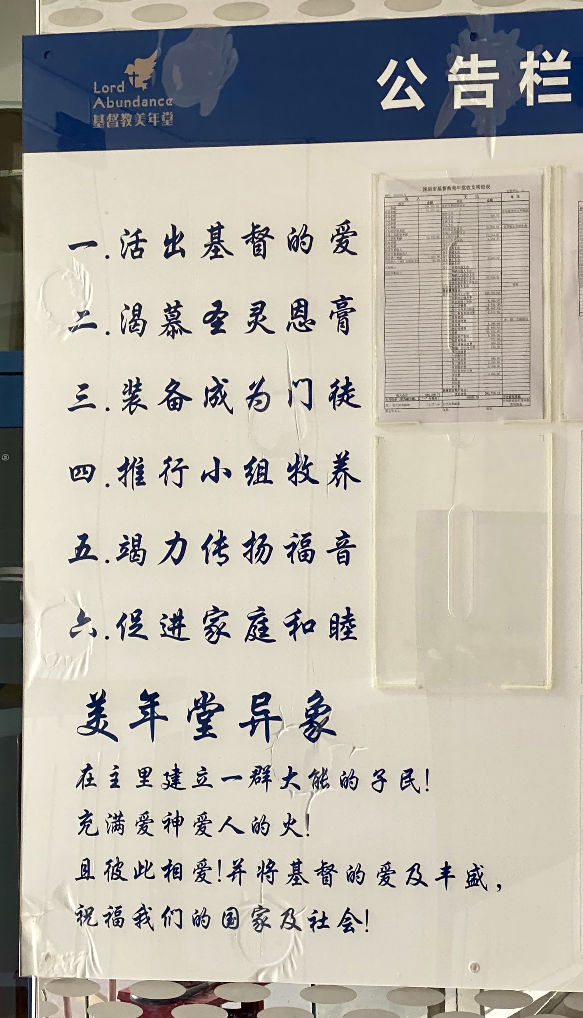 ▲進入大門可見堂會的使命宣言 (2025年7 月攝)